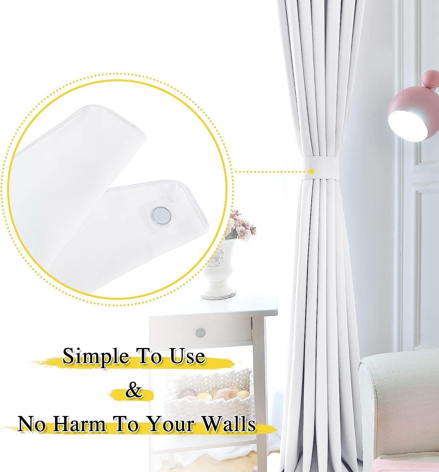 NICETOWN Strong Magnetic Curtain Tiebacks – Modern Simple Style Curtain Ties Backs Holdbacks Holders for Indoor/Outdoor Curtains (White, 18.5 X 4 Inches, Set of 4)(White)