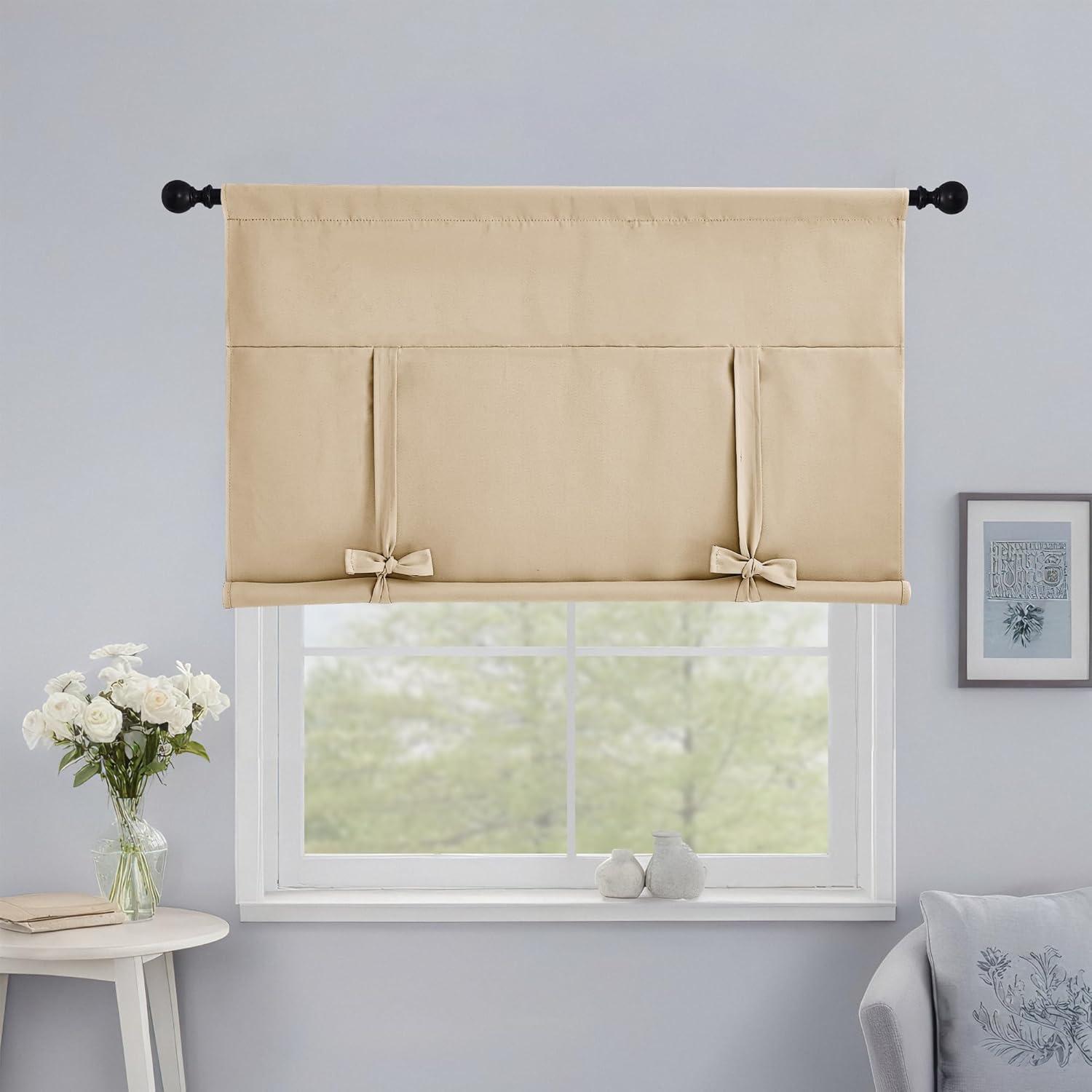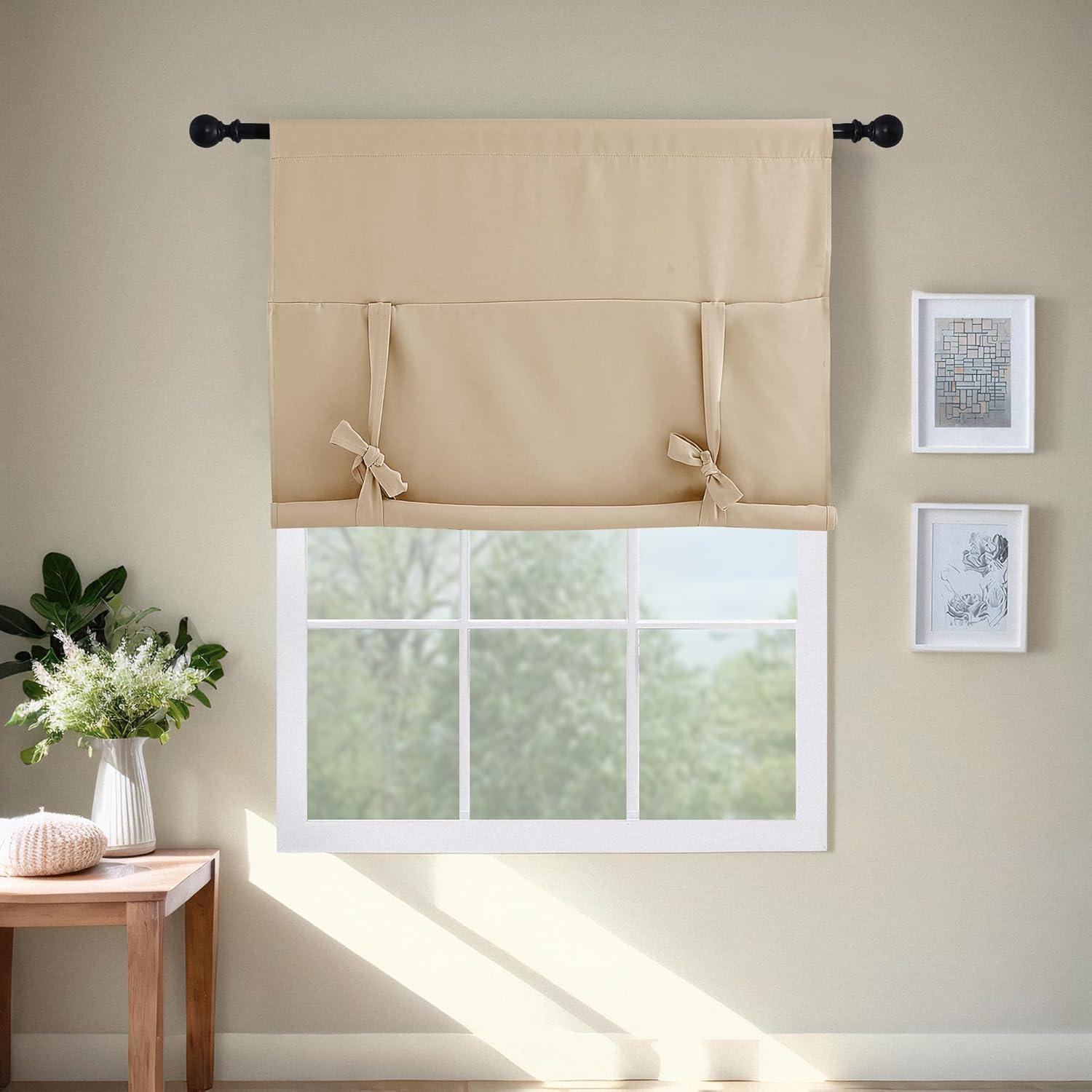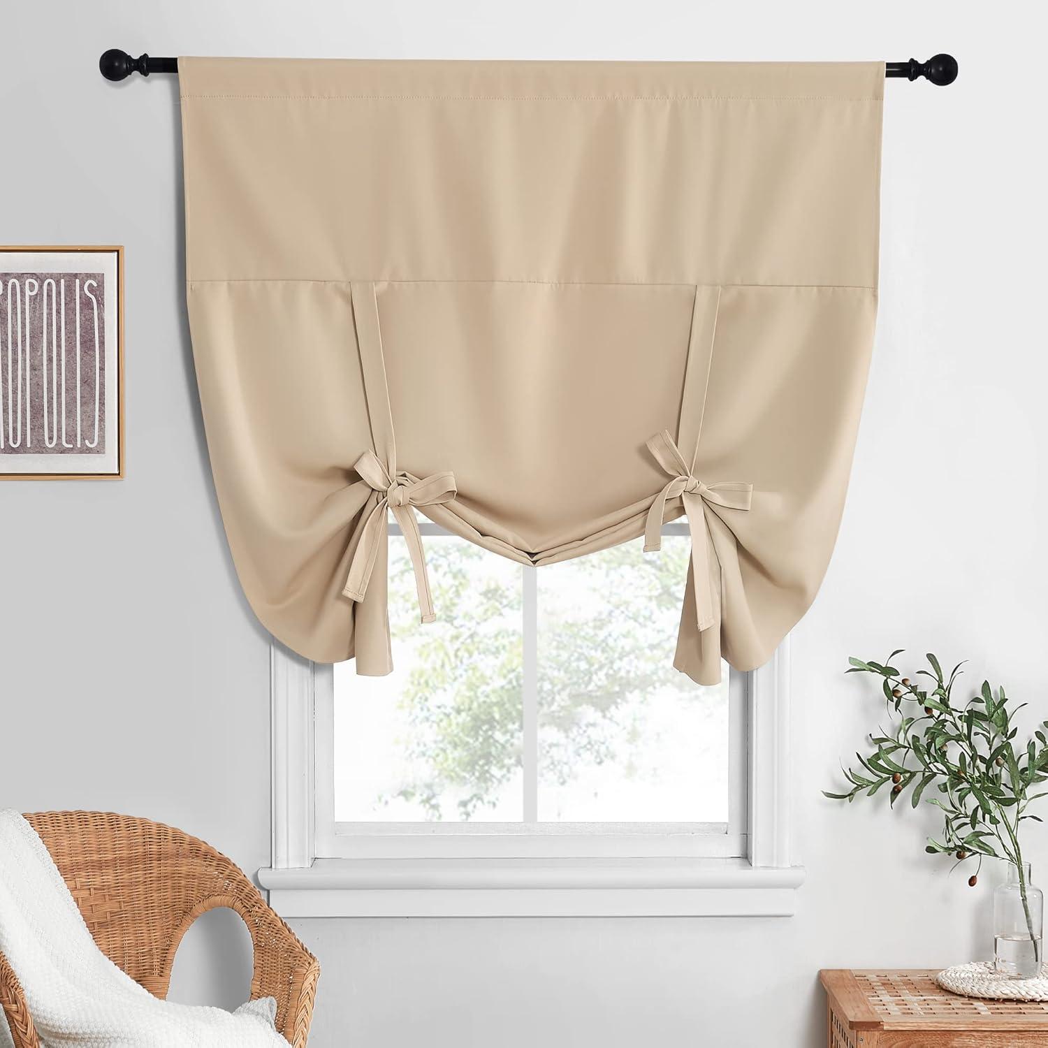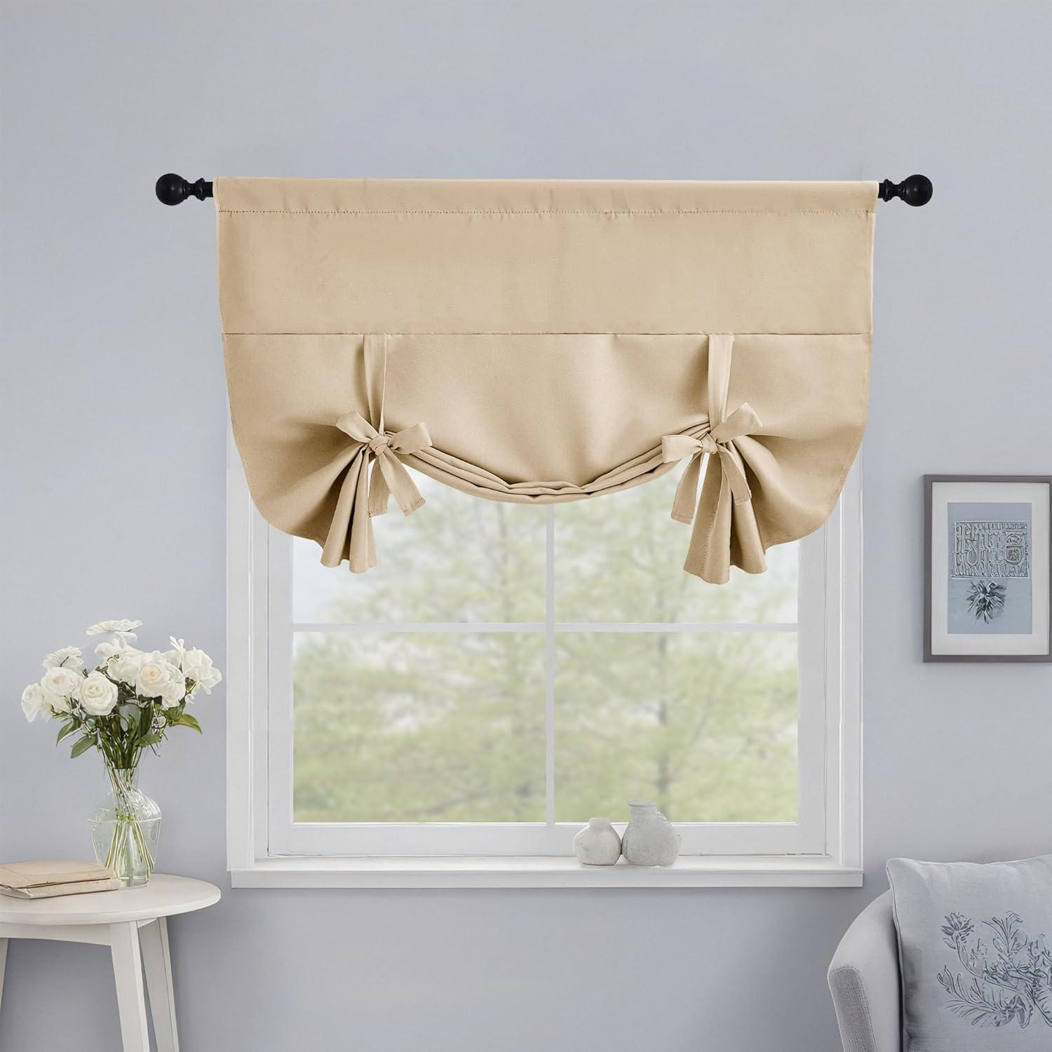 READY MADE: Package includes 1 panel Tie Up Shade with 46″ width x 63″ length (117cm x 161cm), same color as front. 3″ pocket fits various standard or decorative curtain rod/pole.