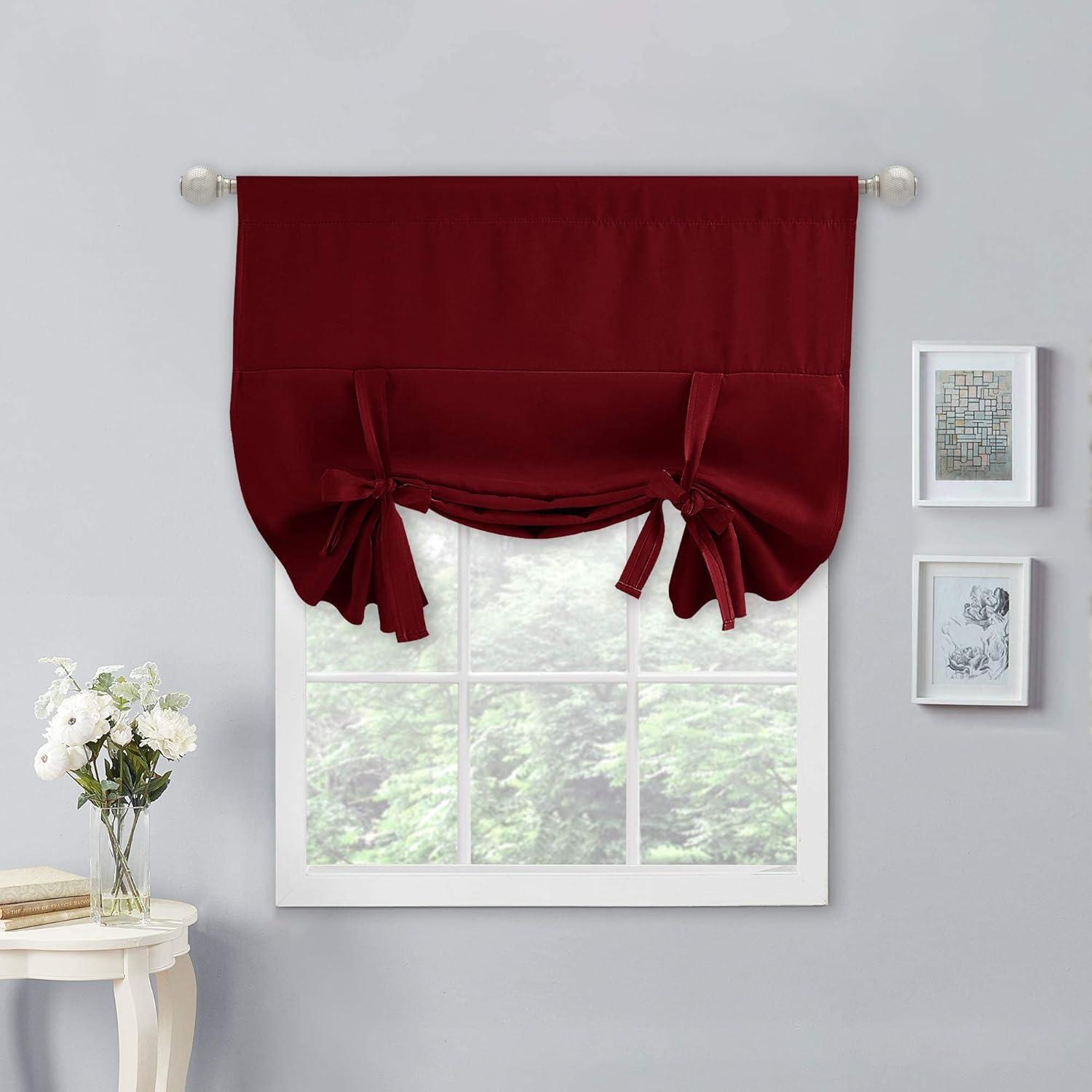 imageNICETOWN Thermal Insulated Blackout Short Curtain  Bathroom Curtain Gray Tie Up Shade for Small Window Window Valance Balloon Roman Blind Rod Pocket Panel 46 inches W x 63 inches LBurgundy Red