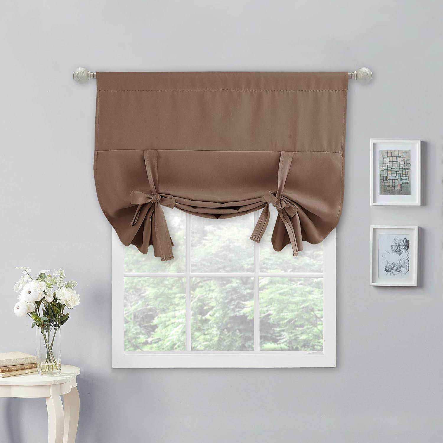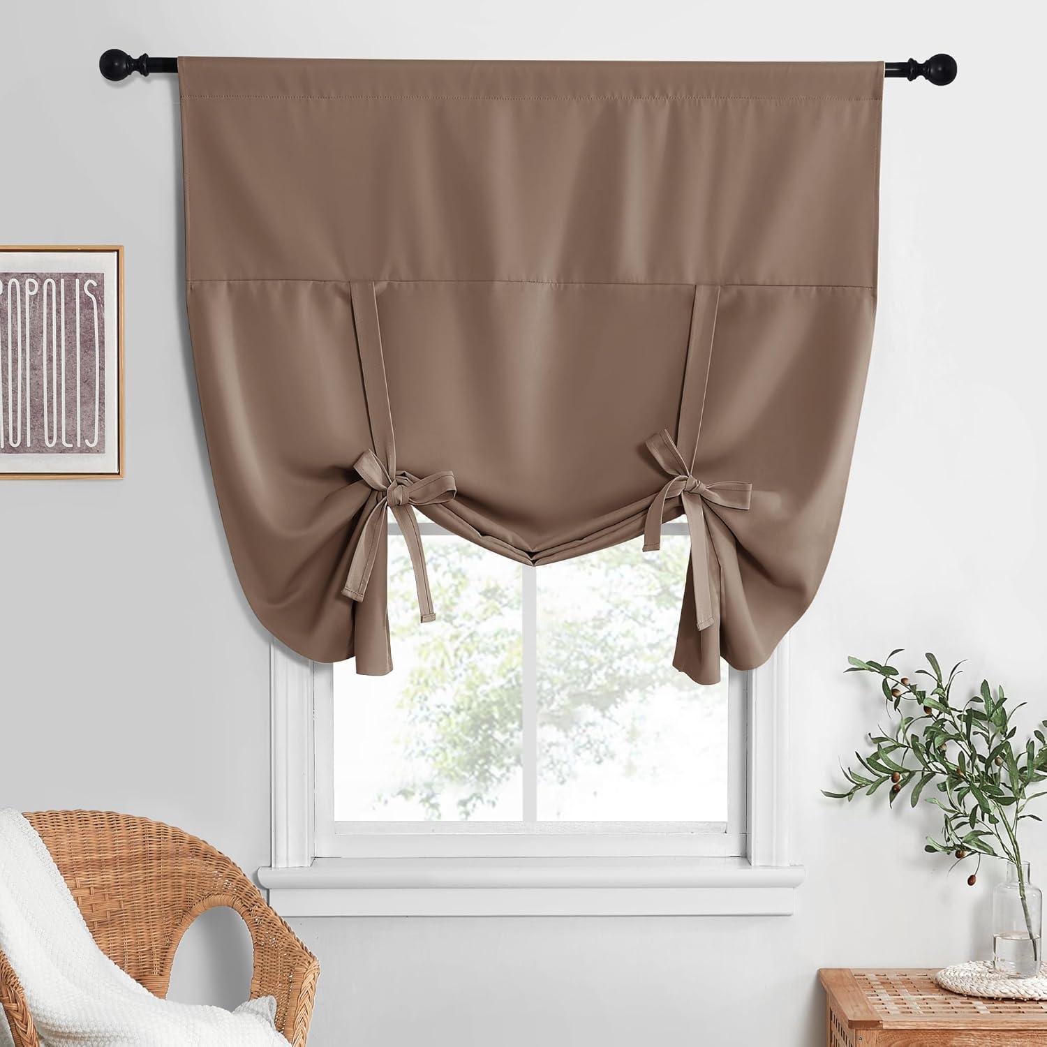 NICETOWN Thermal Insulated Blackout Short Curtain – Bathroom Curtain Gray Tie Up Shade for Small Window, Window Valance Balloon Roman Blind (Rod Pocket Panel, 46 inches W x 63 inches L)(Cappuccino)