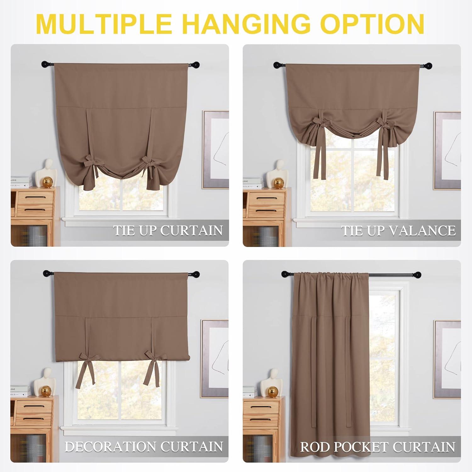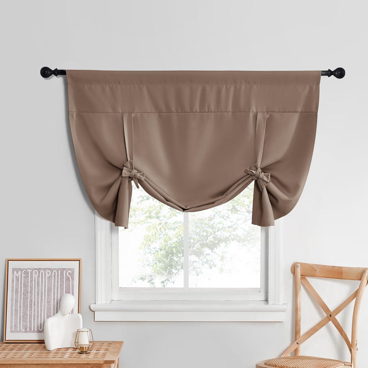 imageNICETOWN Thermal Insulated Blackout Short Curtain  Bathroom Curtain Gray Tie Up Shade for Small Window Window Valance Balloon Roman Blind Rod Pocket Panel 46 inches W x 63 inches LCappuccino