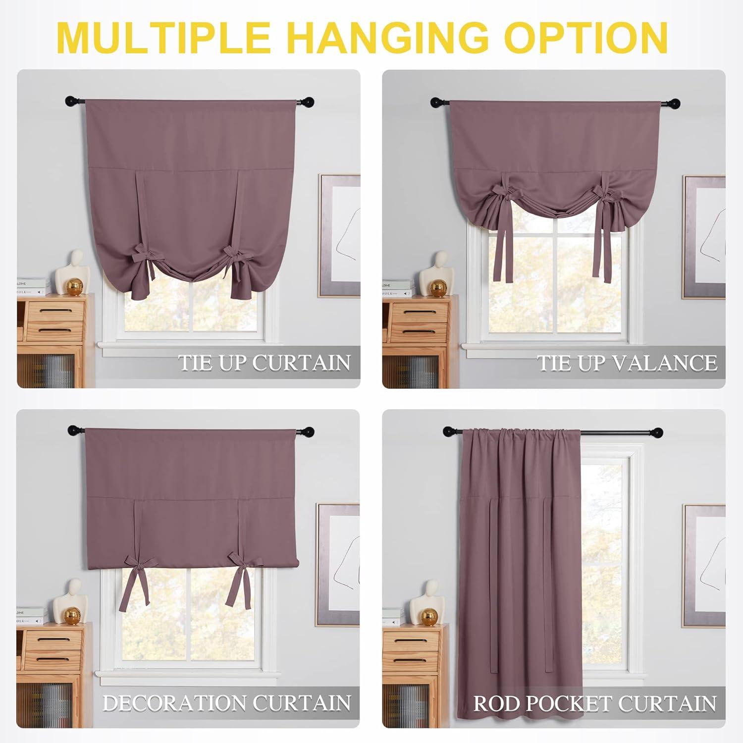 imageNICETOWN Thermal Insulated Blackout Short Curtain  Bathroom Curtain Gray Tie Up Shade for Small Window Window Valance Balloon Roman Blind Rod Pocket Panel 46 inches W x 63 inches LDry Rose