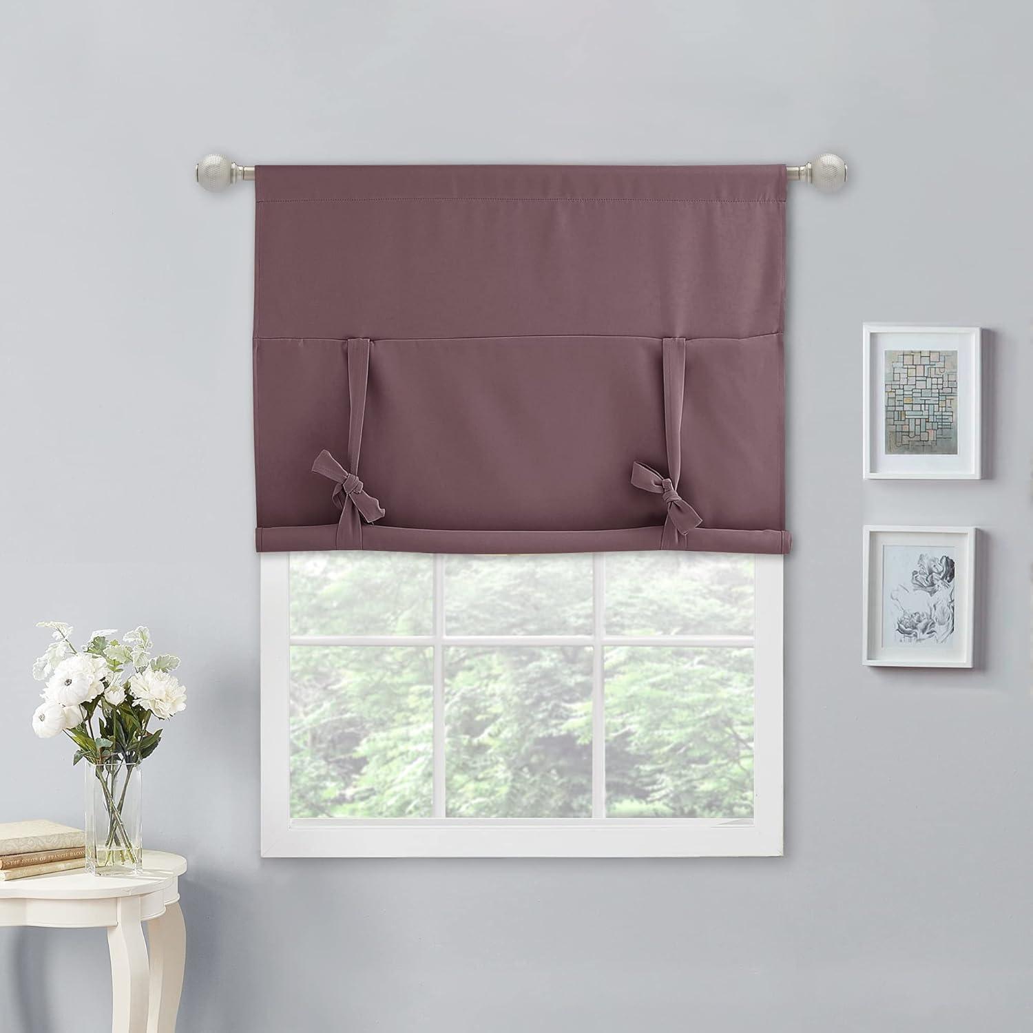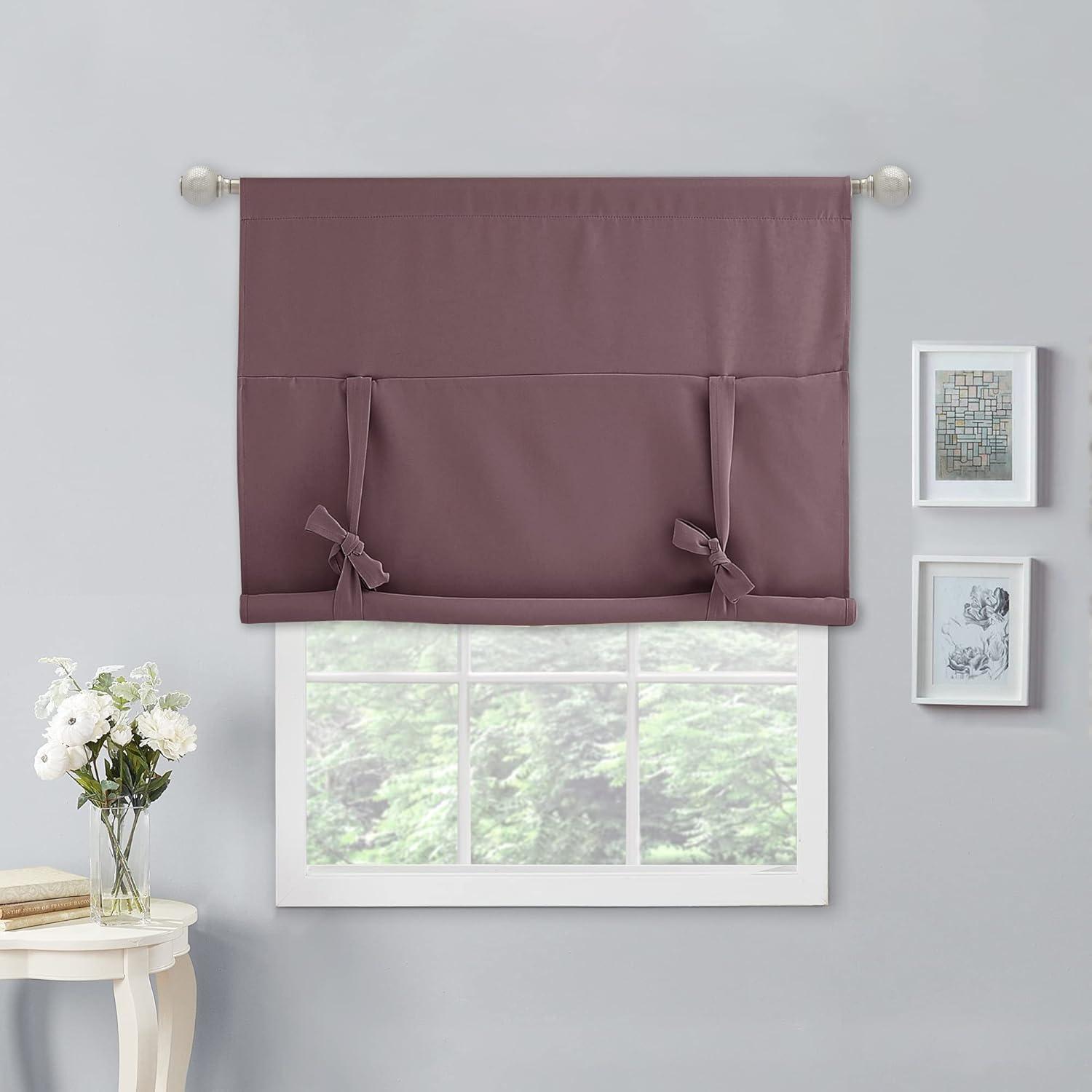 NICETOWN Thermal Insulated Blackout Short Curtain – Bathroom Curtain Gray Tie Up Shade for Small Window, Window Valance Balloon Roman Blind (Rod Pocket Panel, 46 inches W x 63 inches L)(Dry Rose)