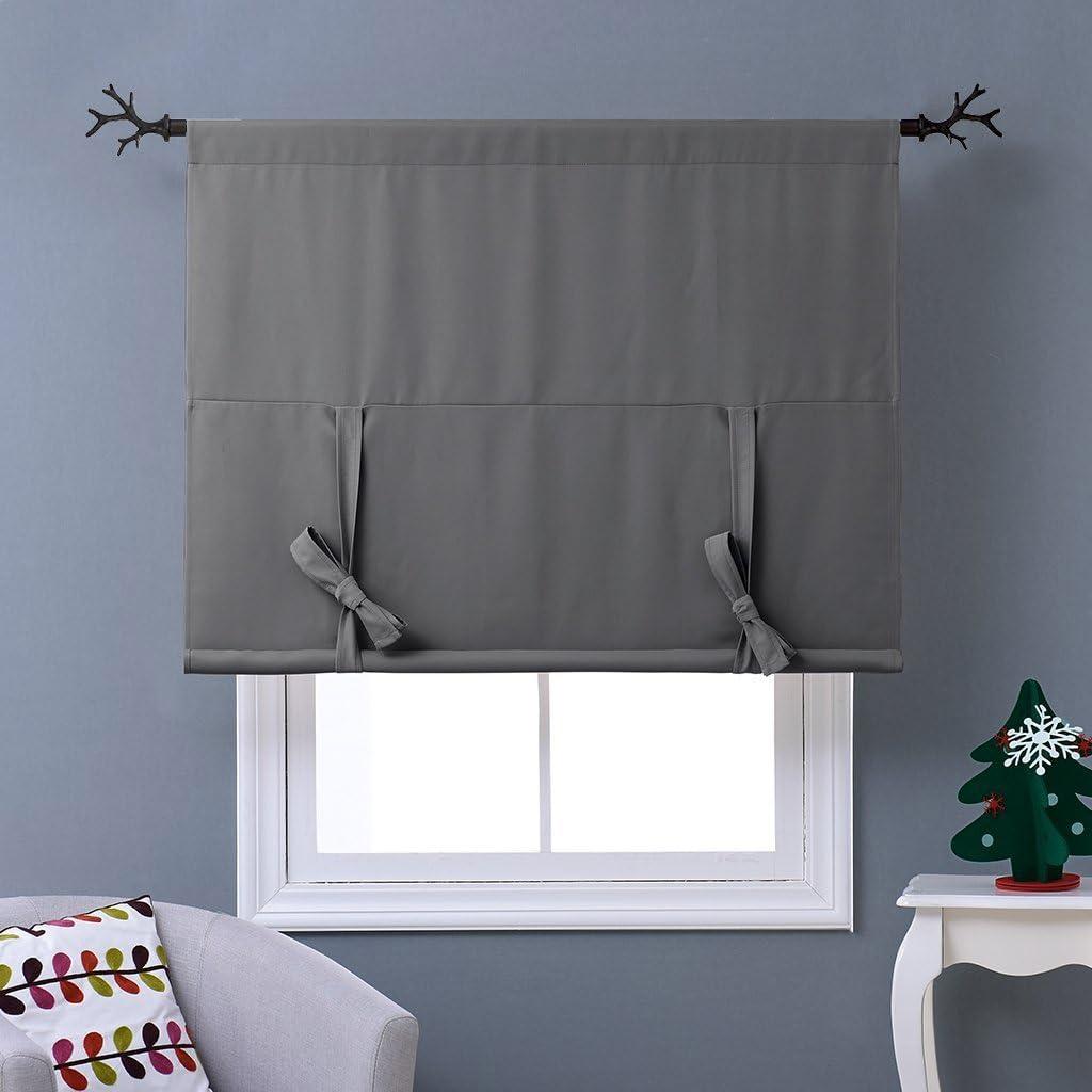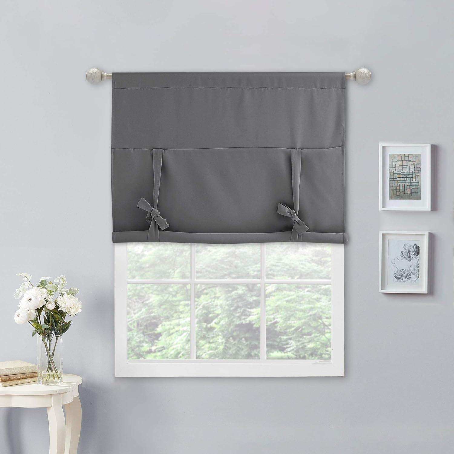 imageNICETOWN Thermal Insulated Blackout Short Curtain  Bathroom Curtain Gray Tie Up Shade for Small Window Window Valance Balloon Roman Blind Rod Pocket Panel 46 inches W x 63 inches LGrey