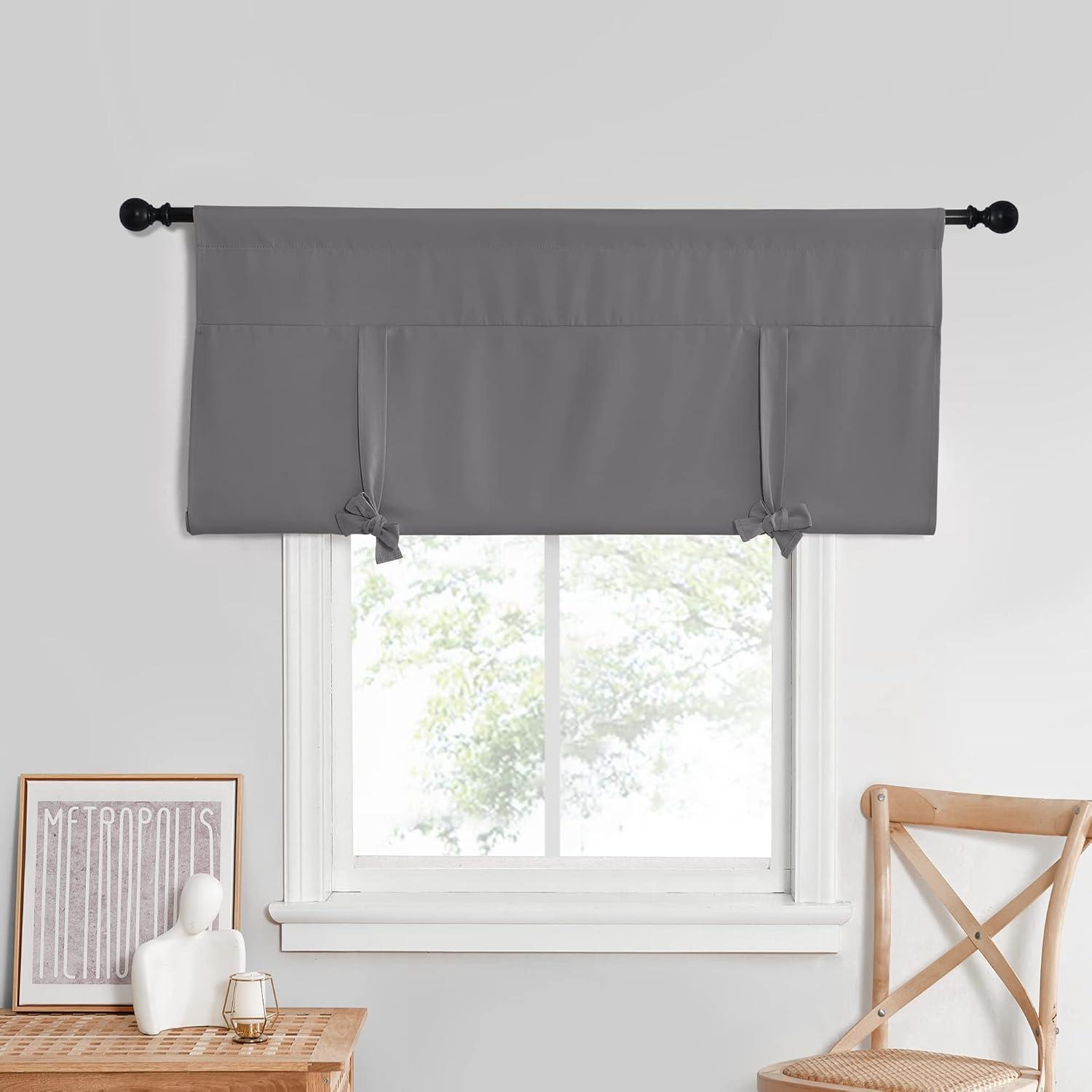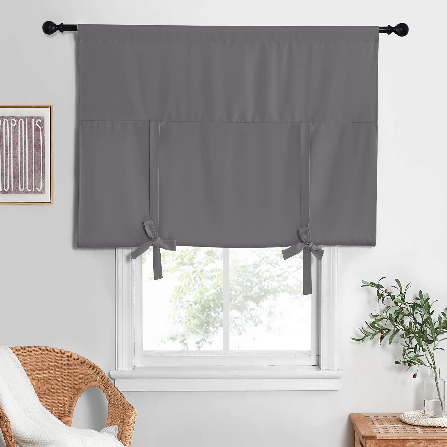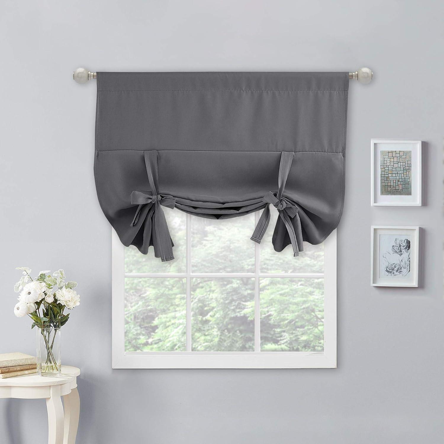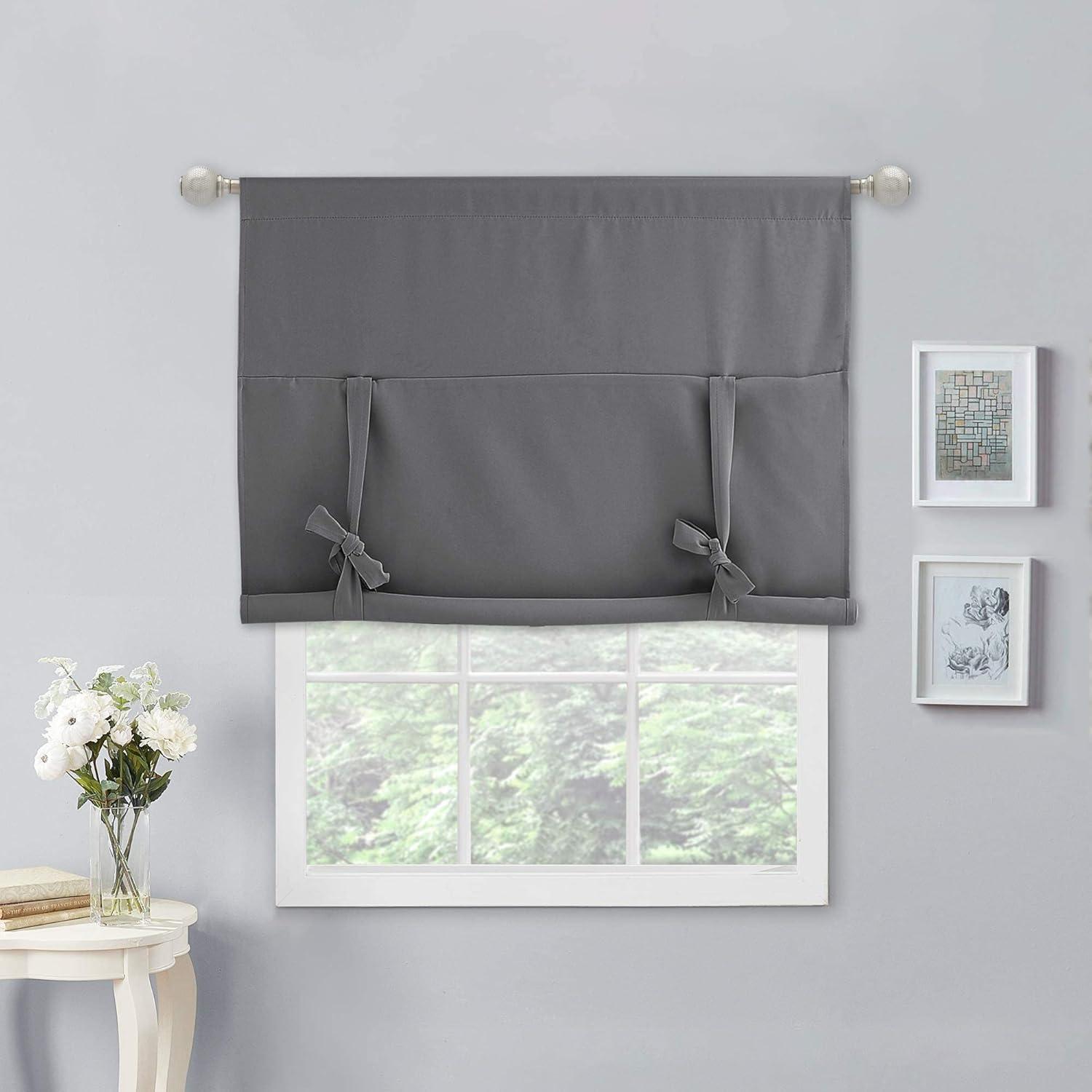 NICETOWN Thermal Insulated Blackout Short Curtain – Bathroom Curtain Gray Tie Up Shade for Small Window, Window Valance Balloon Roman Blind (Rod Pocket Panel, 46 inches W x 63 inches L)(Grey)