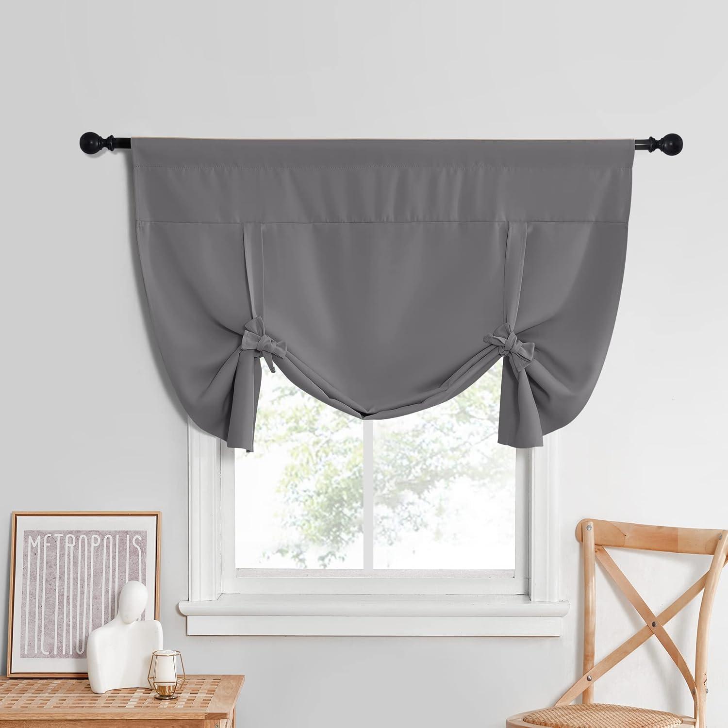 NICETOWN Thermal Insulated Blackout Short Curtain - Bathroom Curtain Gray Tie Up Shade for Small Window, Window Valance Balloon Roman Blind (Rod Pocket Panel, 46 inches W x 63 inches L)(Grey)