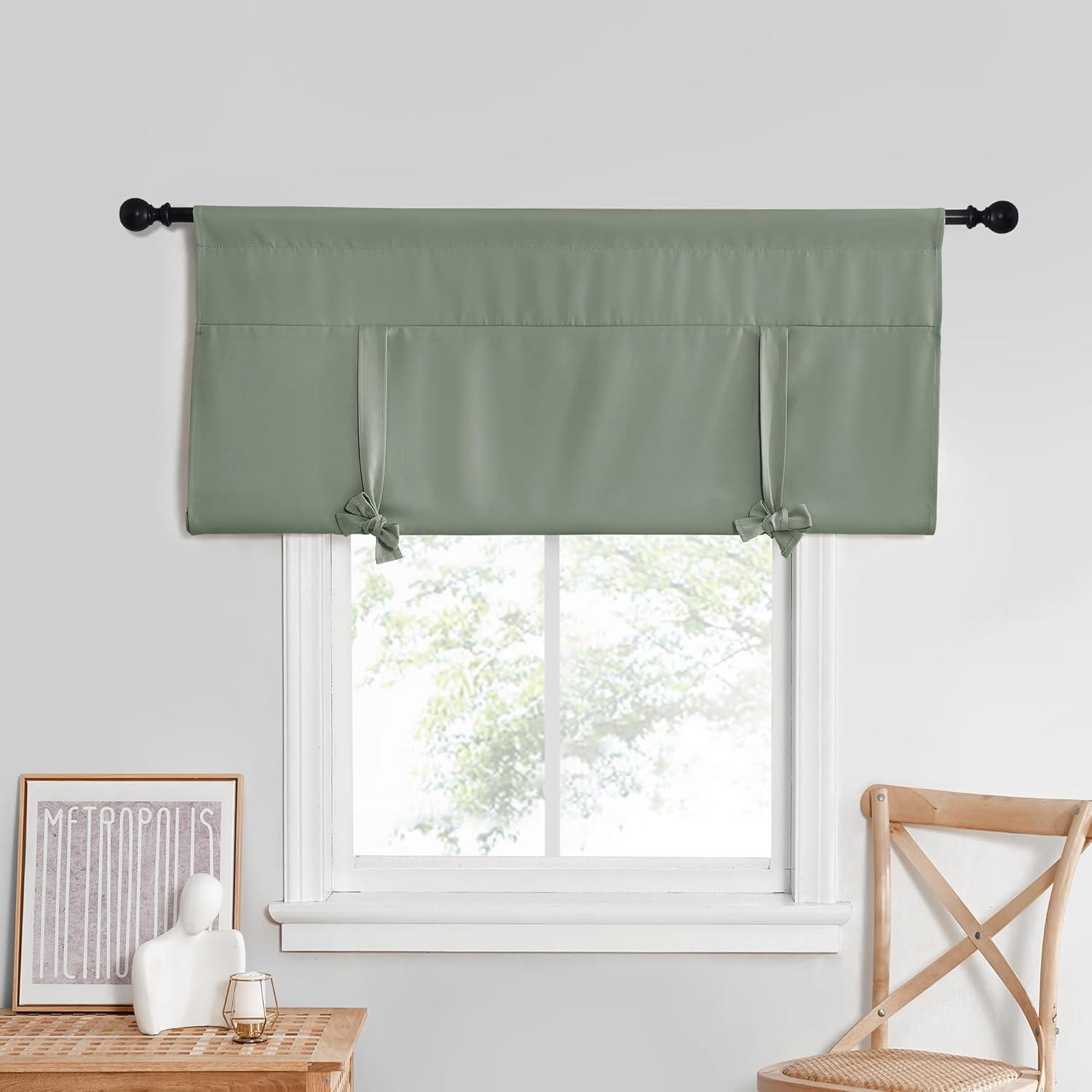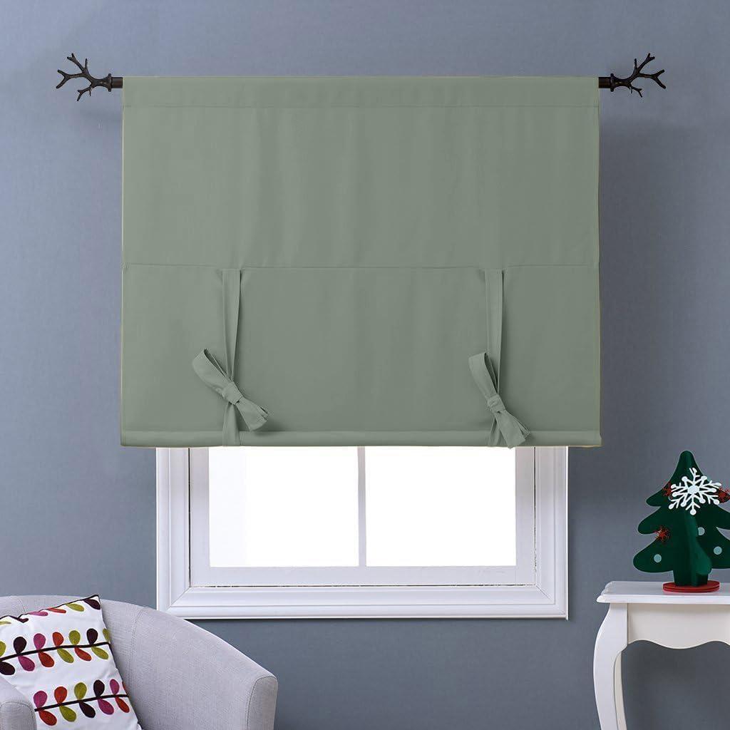 imageNICETOWN Thermal Insulated Blackout Short Curtain  Bathroom Curtain Gray Tie Up Shade for Small Window Window Valance Balloon Roman Blind Rod Pocket Panel 46 inches W x 63 inches LGreyish Green