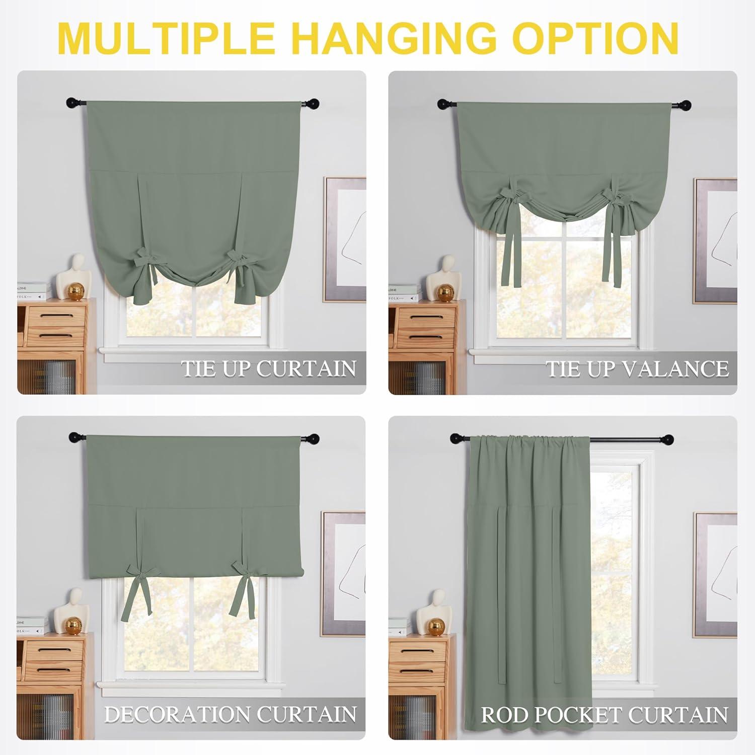 READY MADE: Package includes 1 panel Tie Up Shade with 46″ width x 63″ length (117cm x 161cm), same color as front. 3″ pocket fits various standard or decorative curtain rod/pole.