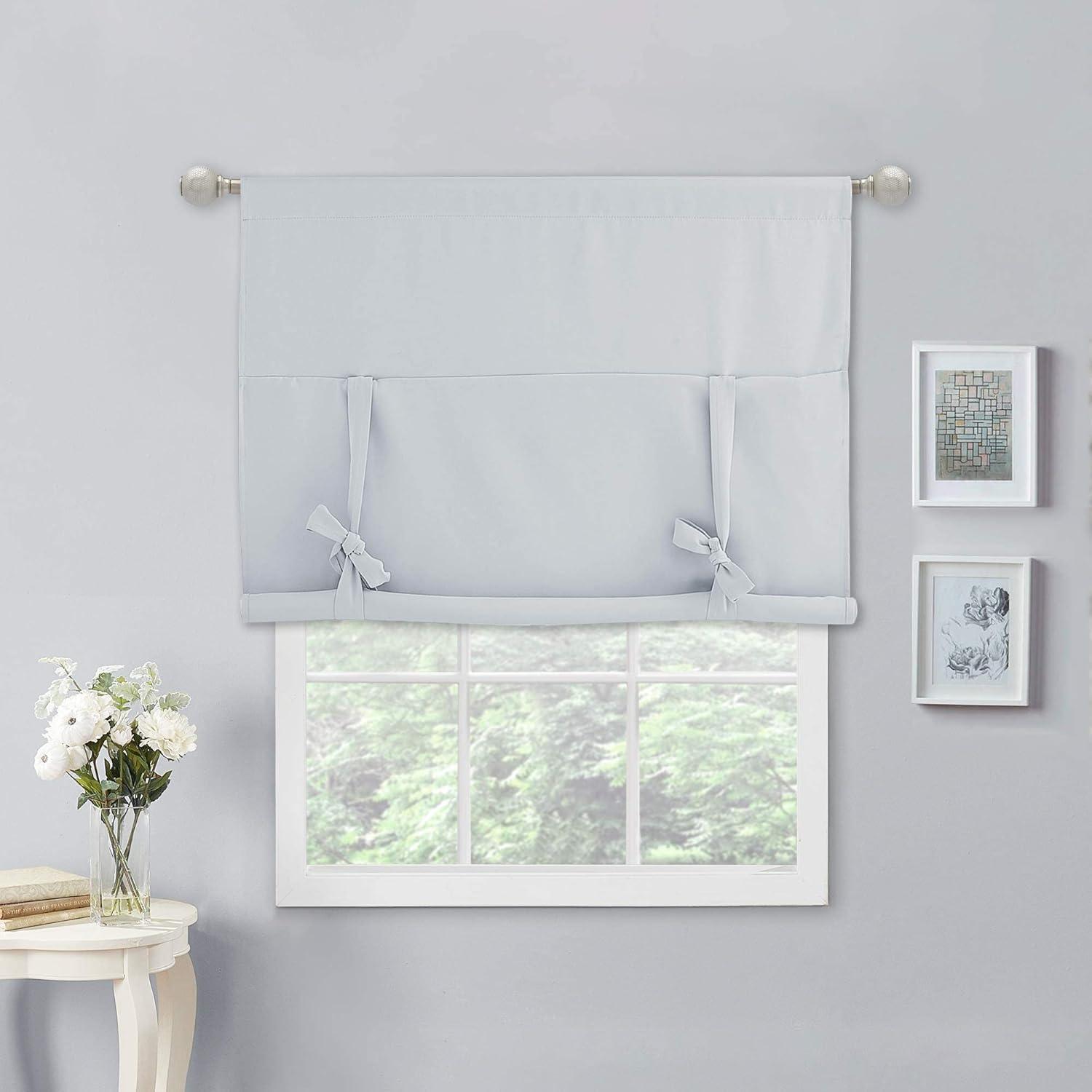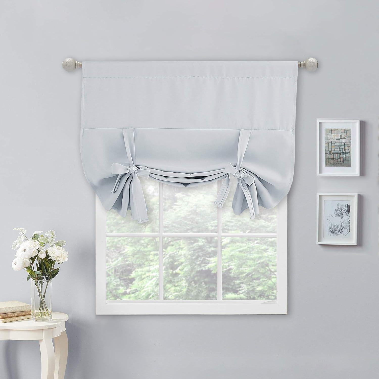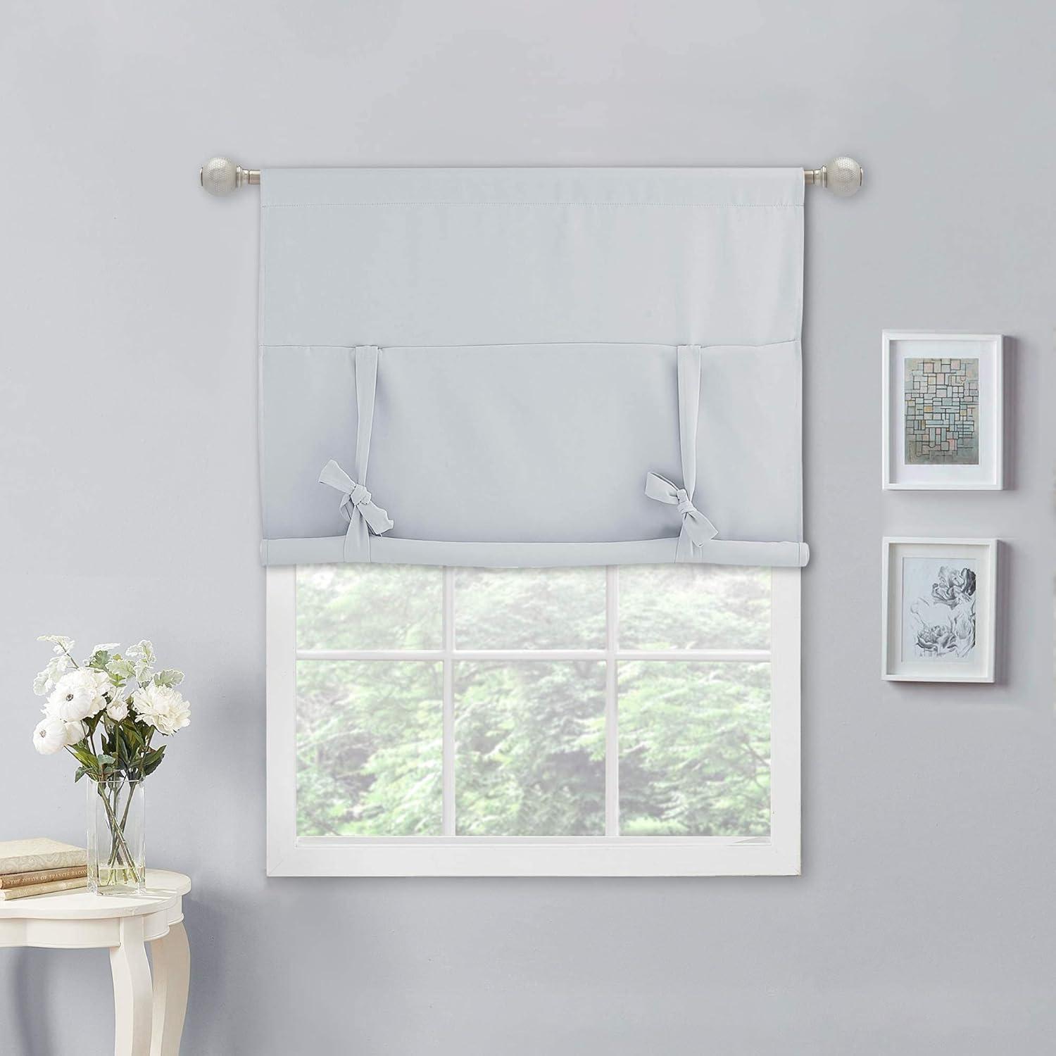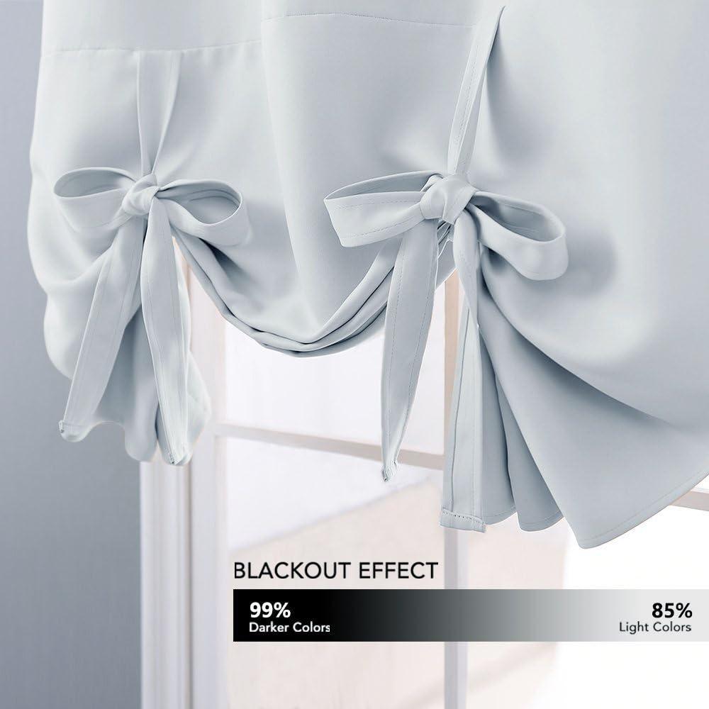 imageNICETOWN Thermal Insulated Blackout Short Curtain  Bathroom Curtain Gray Tie Up Shade for Small Window Window Valance Balloon Roman Blind Rod Pocket Panel 46 inches W x 63 inches LGreyish White