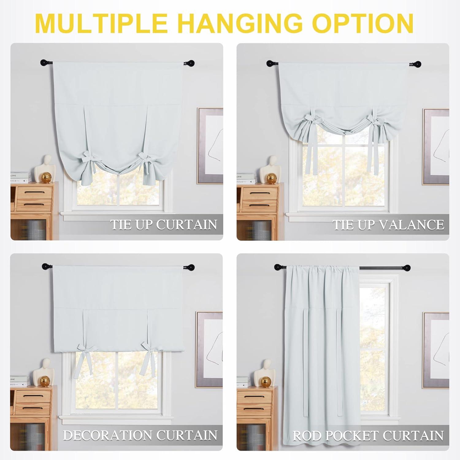 READY MADE: Package includes 1 panel Tie Up Shade with 46″ width x 63″ length (117cm x 161cm), same color as front. 3″ pocket fits various standard or decorative curtain rod/pole.