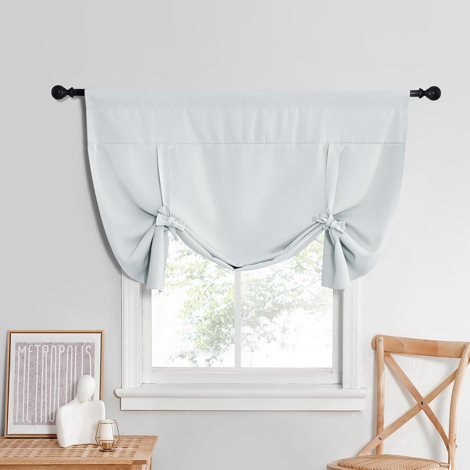 NICETOWN Thermal Insulated Blackout Short Curtain – Bathroom Curtain Gray Tie Up Shade for Small Window, Window Valance Balloon Roman Blind (Rod Pocket Panel, 46 inches W x 63 inches L)(Greyish White)