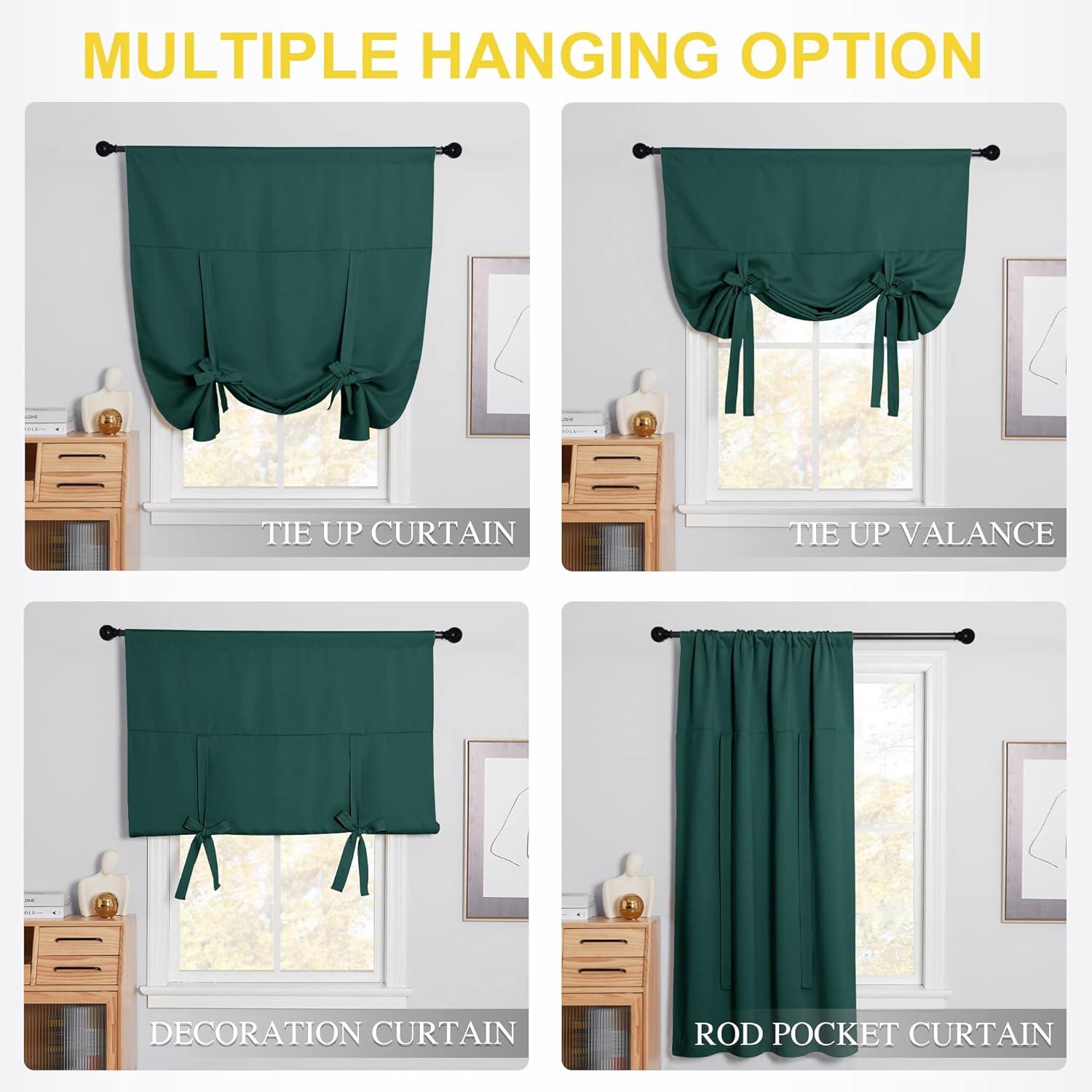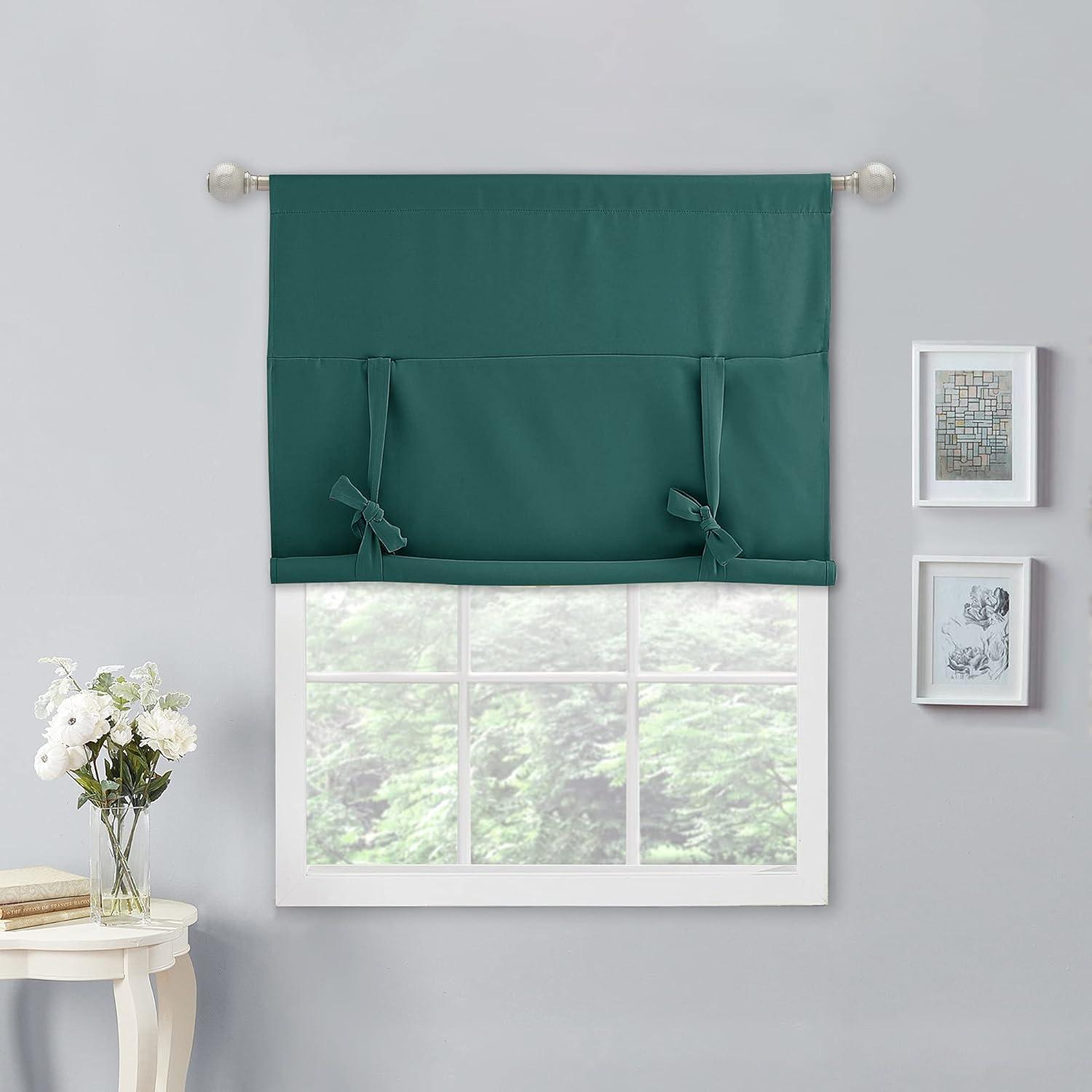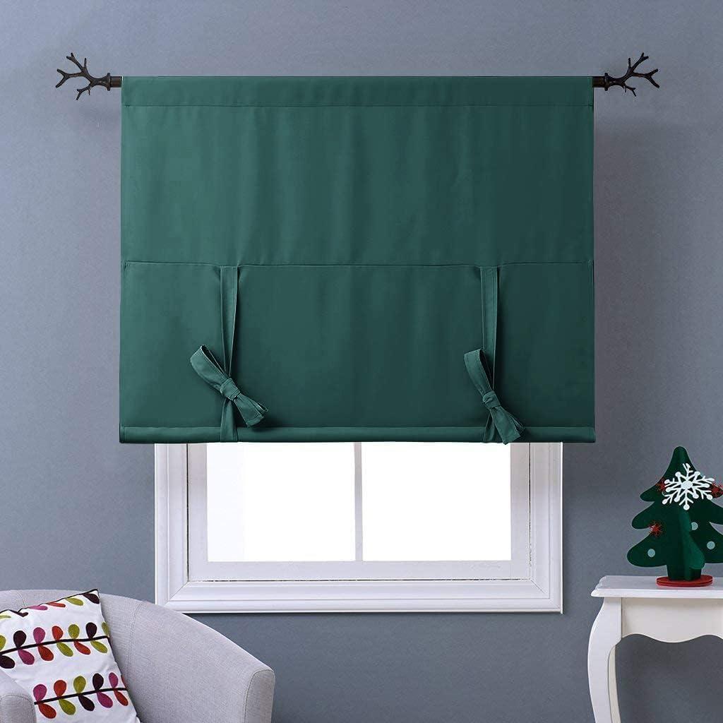 NICETOWN Thermal Insulated Blackout Short Curtain – Bathroom Curtain Gray Tie Up Shade for Small Window, Window Valance Balloon Roman Blind (Rod Pocket Panel, 46 inches W x 63 inches L)(Hunter Green)