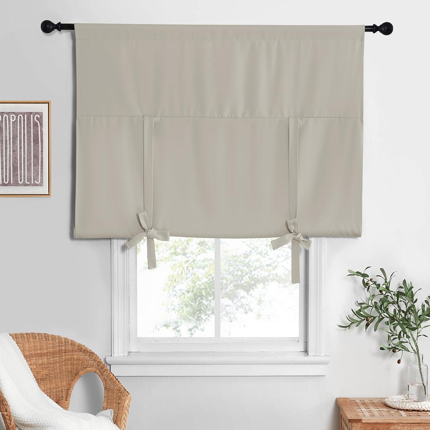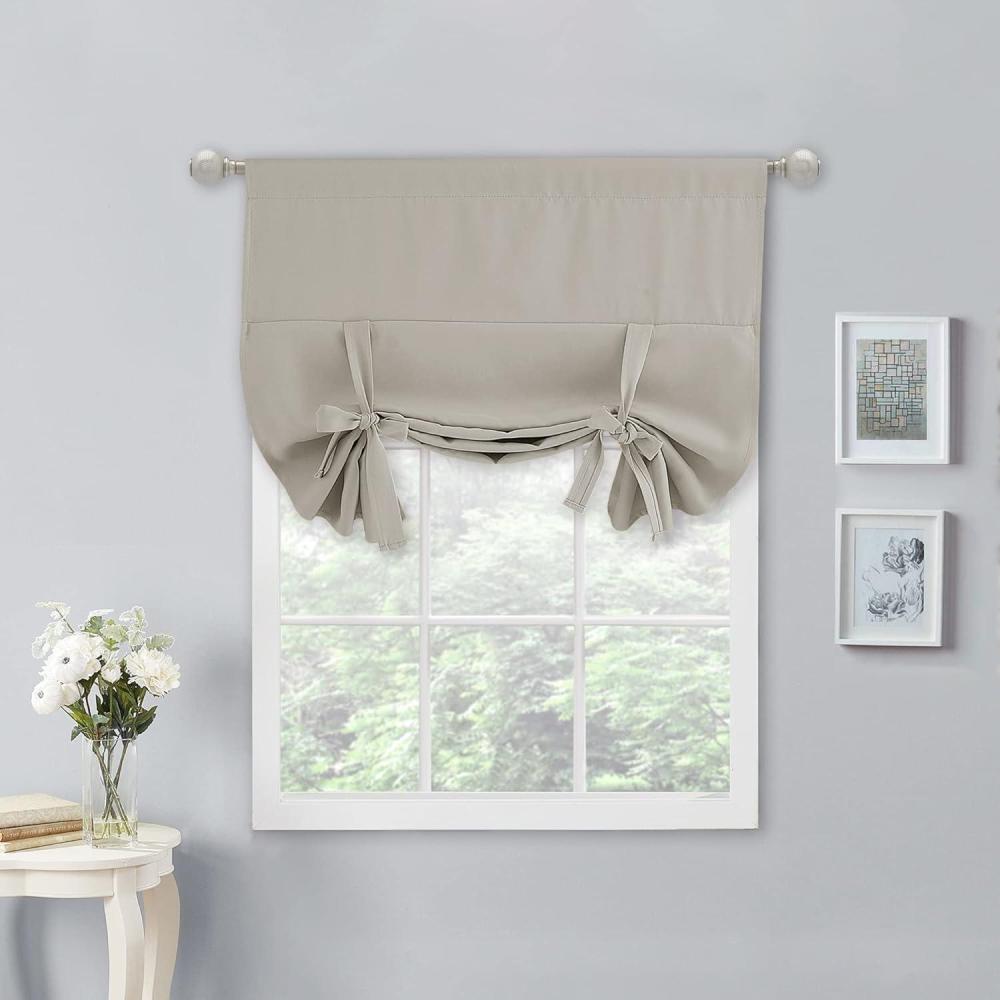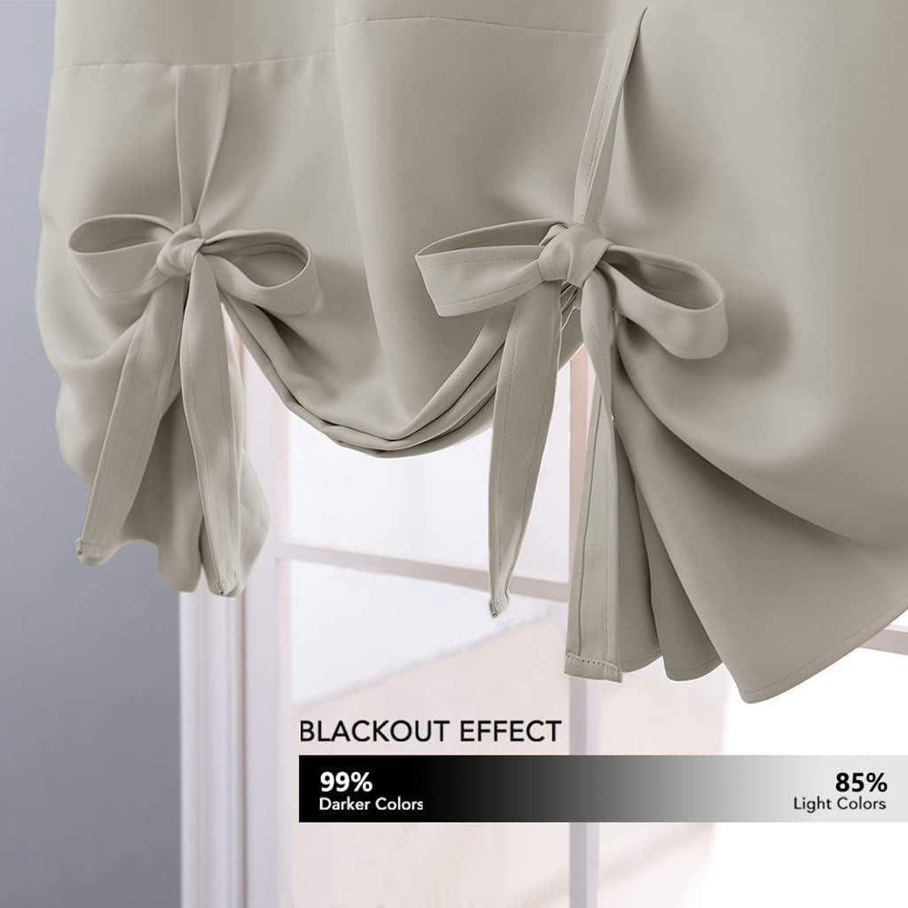 imageNICETOWN Thermal Insulated Blackout Short Curtain  Bathroom Curtain Gray Tie Up Shade for Small Window Window Valance Balloon Roman Blind Rod Pocket Panel 46 inches W x 63 inches LLight Beige