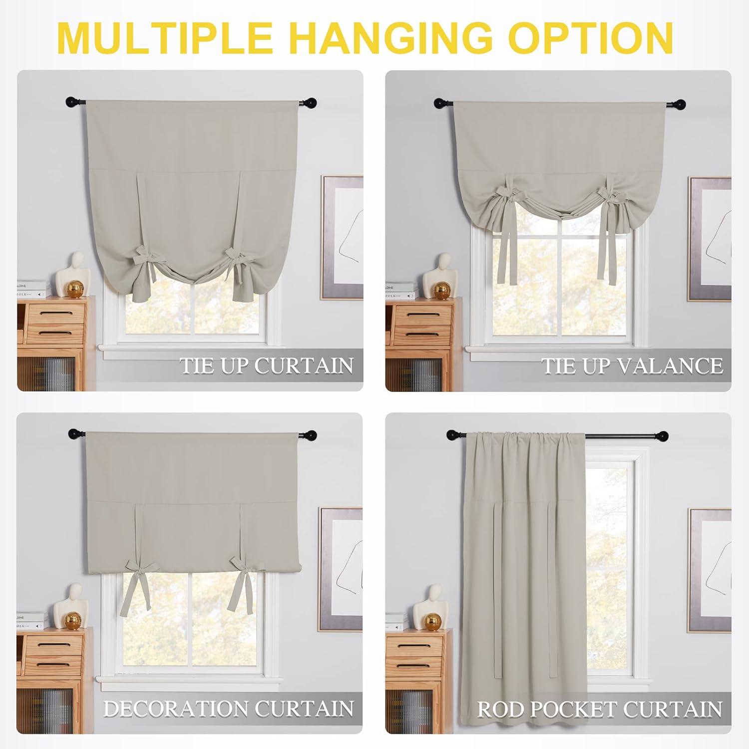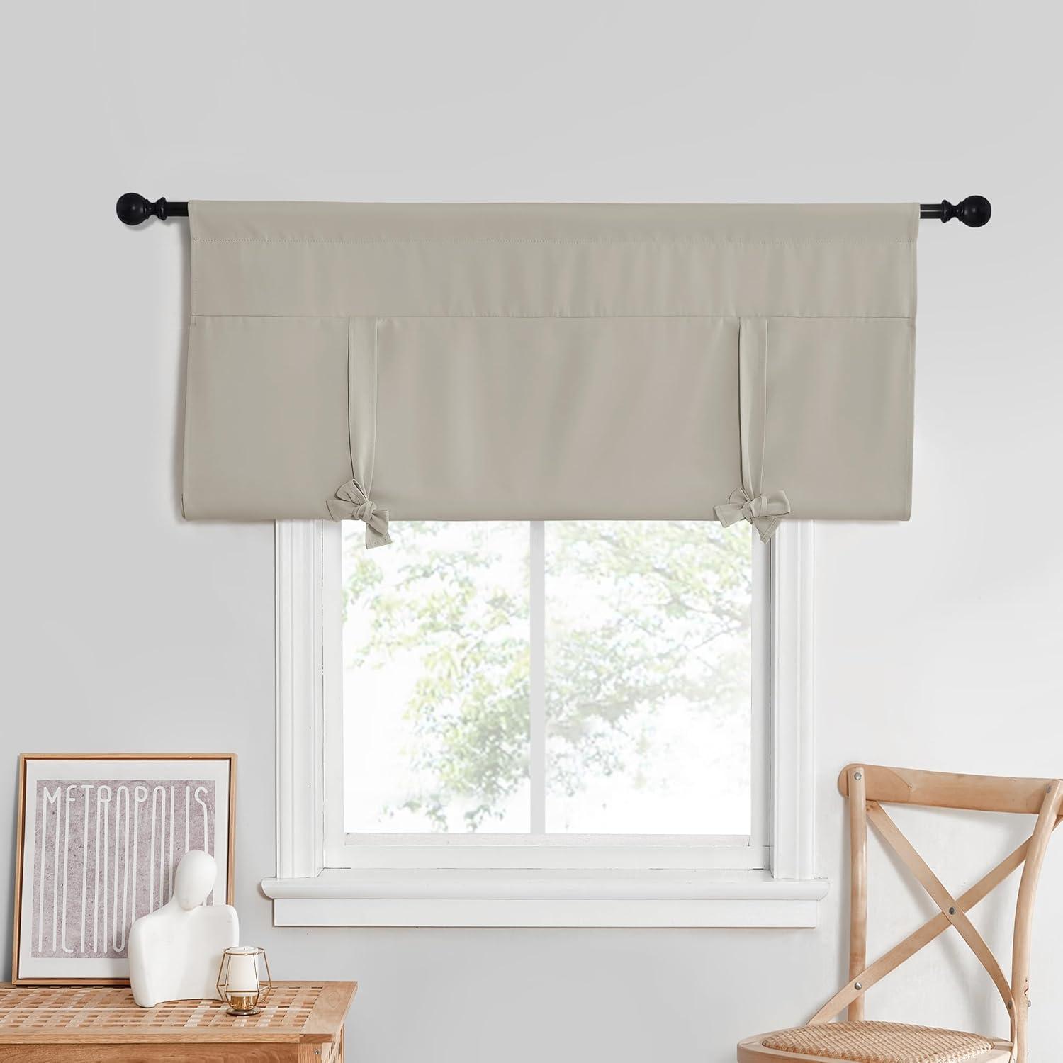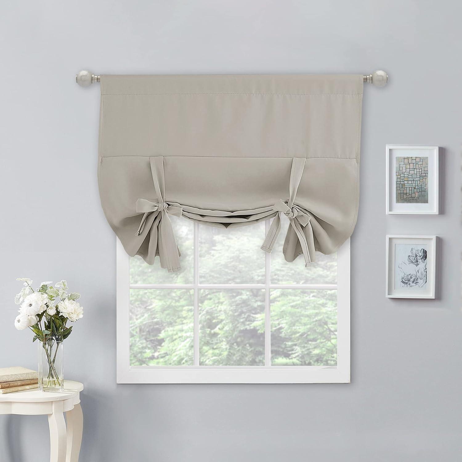 imageNICETOWN Thermal Insulated Blackout Short Curtain  Bathroom Curtain Gray Tie Up Shade for Small Window Window Valance Balloon Roman Blind Rod Pocket Panel 46 inches W x 63 inches LLight Beige