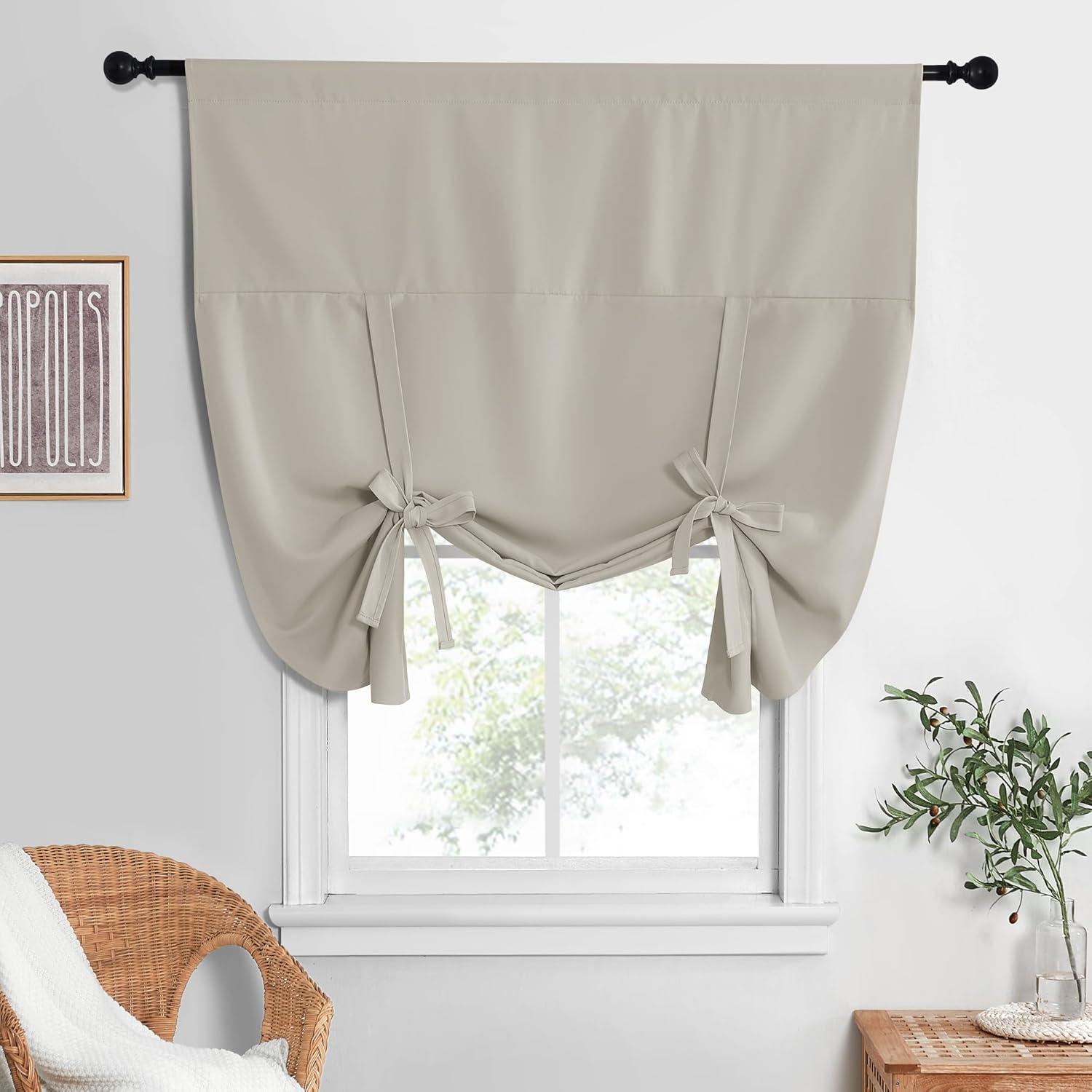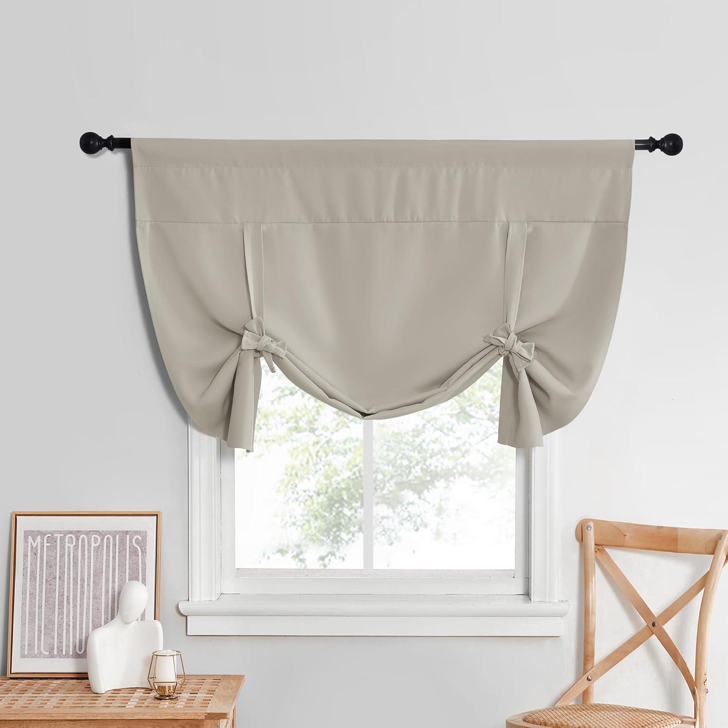 NICETOWN Thermal Insulated Blackout Short Curtain – Bathroom Curtain Gray Tie Up Shade for Small Window, Window Valance Balloon Roman Blind (Rod Pocket Panel, 46 inches W x 63 inches L)(Light Beige)