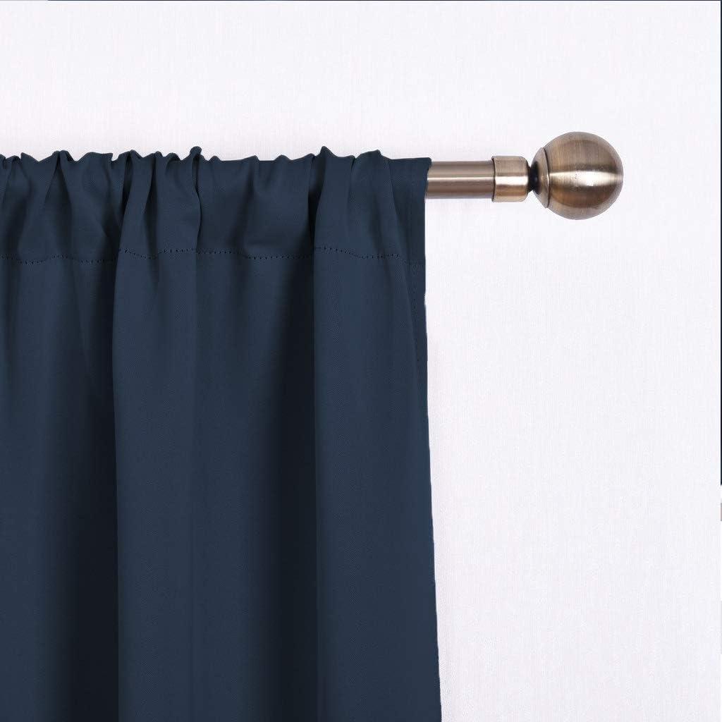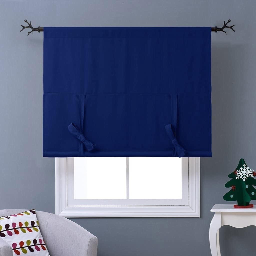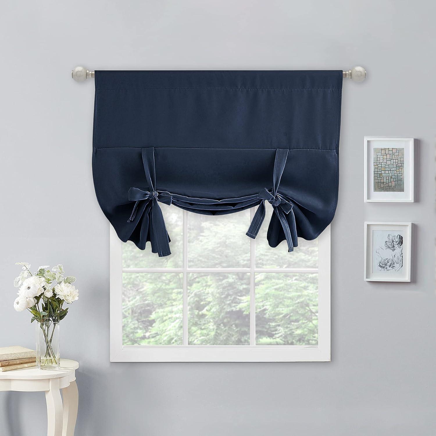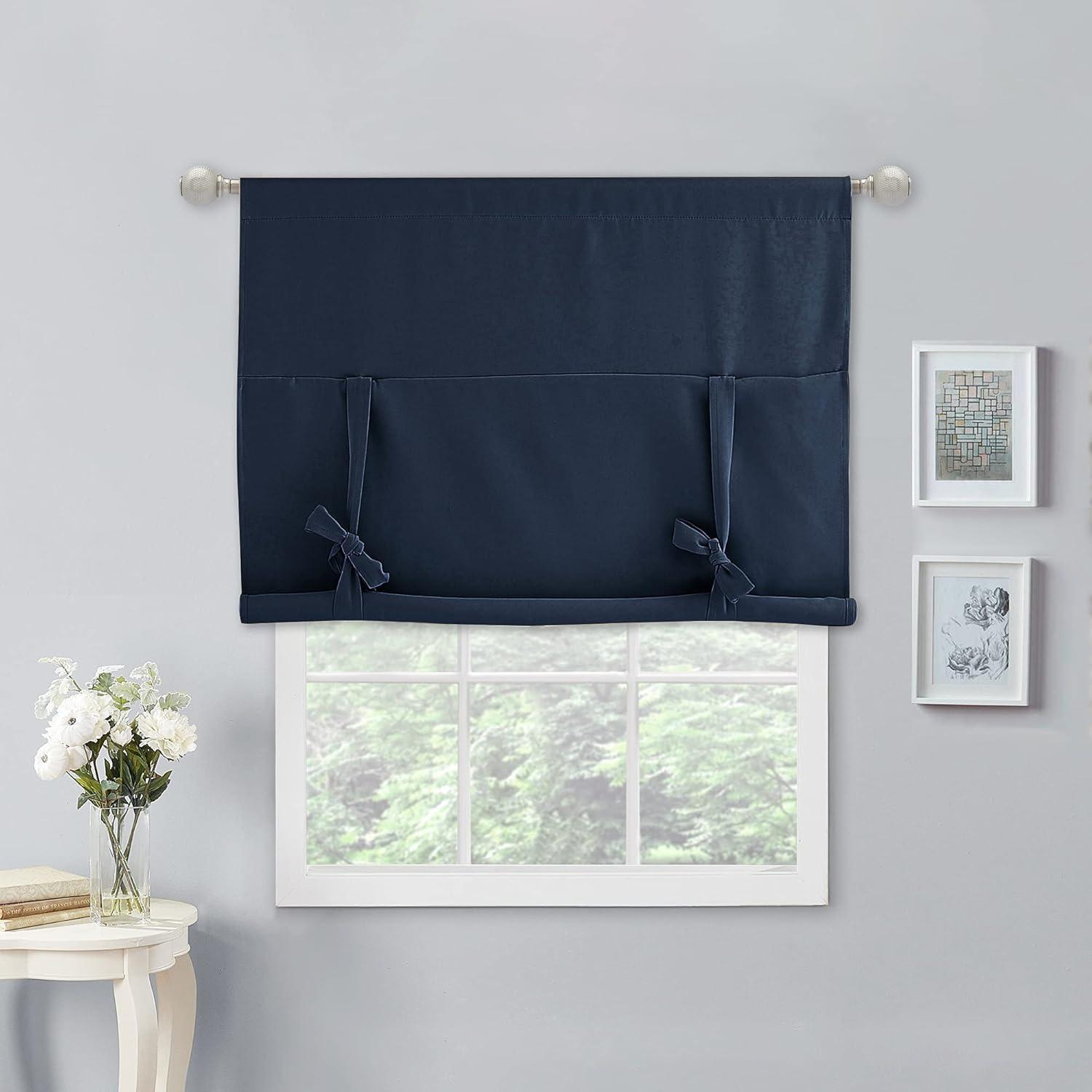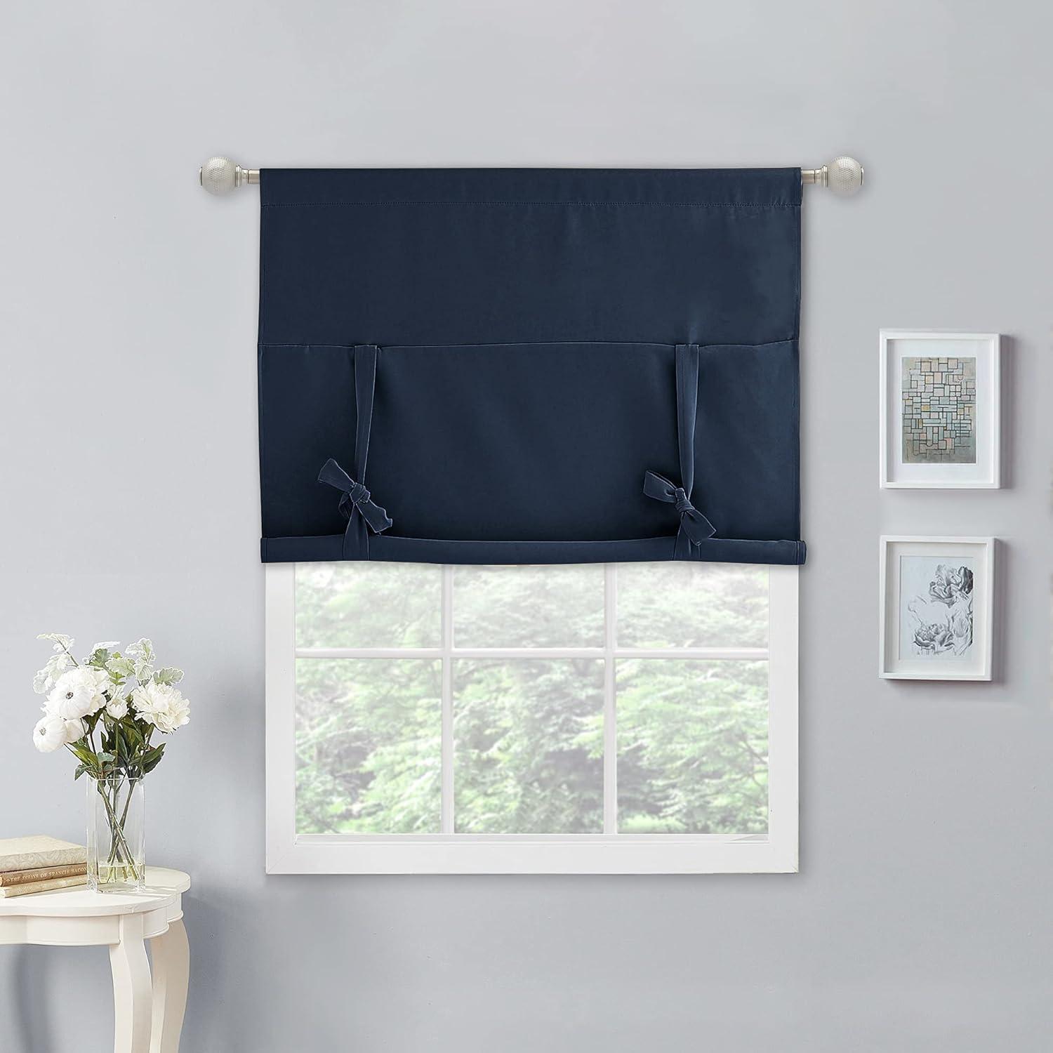 NICETOWN Thermal Insulated Blackout Short Curtain – Bathroom Curtain Gray Tie Up Shade for Small Window, Window Valance Balloon Roman Blind (Rod Pocket Panel, 46 inches W x 63 inches L)(Navy Blue)