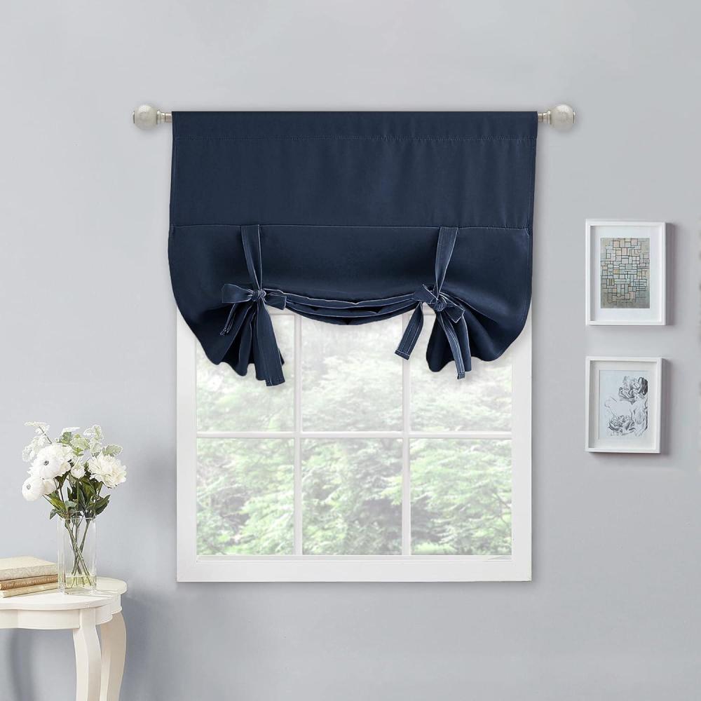 imageNICETOWN Thermal Insulated Blackout Short Curtain  Bathroom Curtain Gray Tie Up Shade for Small Window Window Valance Balloon Roman Blind Rod Pocket Panel 46 inches W x 63 inches LNavy