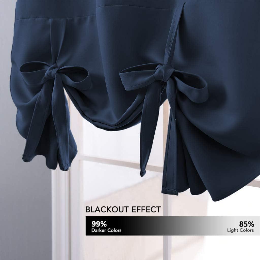 imageNICETOWN Thermal Insulated Blackout Short Curtain  Bathroom Curtain Gray Tie Up Shade for Small Window Window Valance Balloon Roman Blind Rod Pocket Panel 46 inches W x 63 inches LNavy