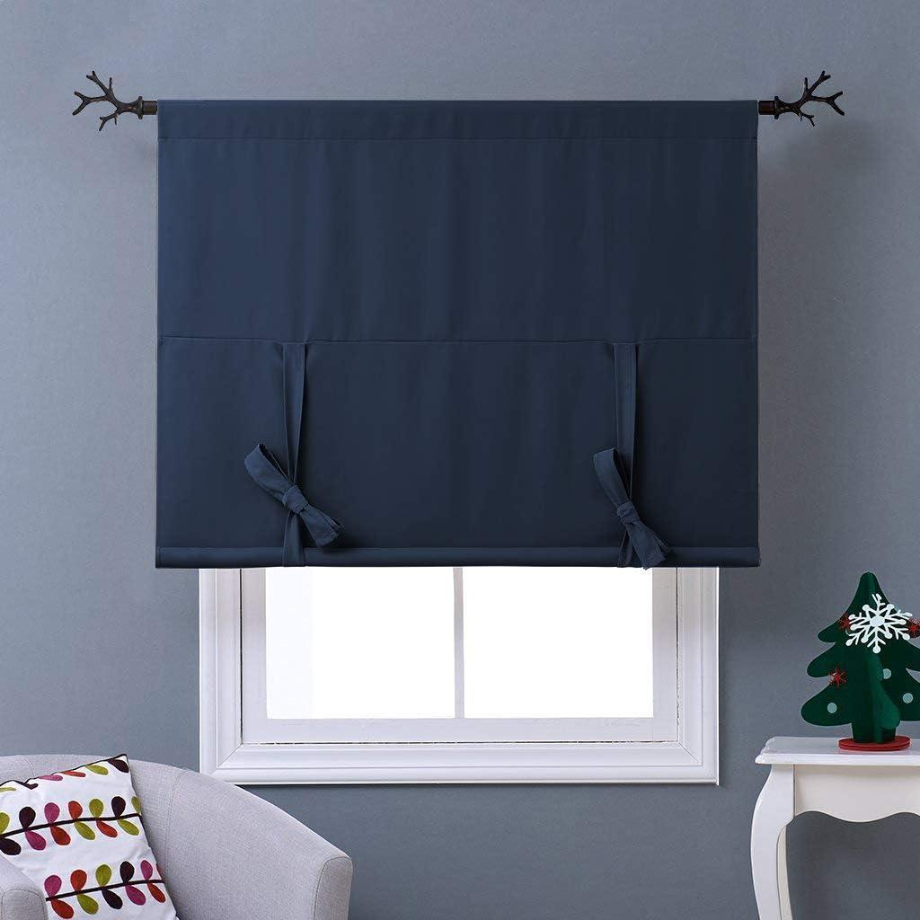 imageNICETOWN Thermal Insulated Blackout Short Curtain  Bathroom Curtain Gray Tie Up Shade for Small Window Window Valance Balloon Roman Blind Rod Pocket Panel 46 inches W x 63 inches LNavy Blue