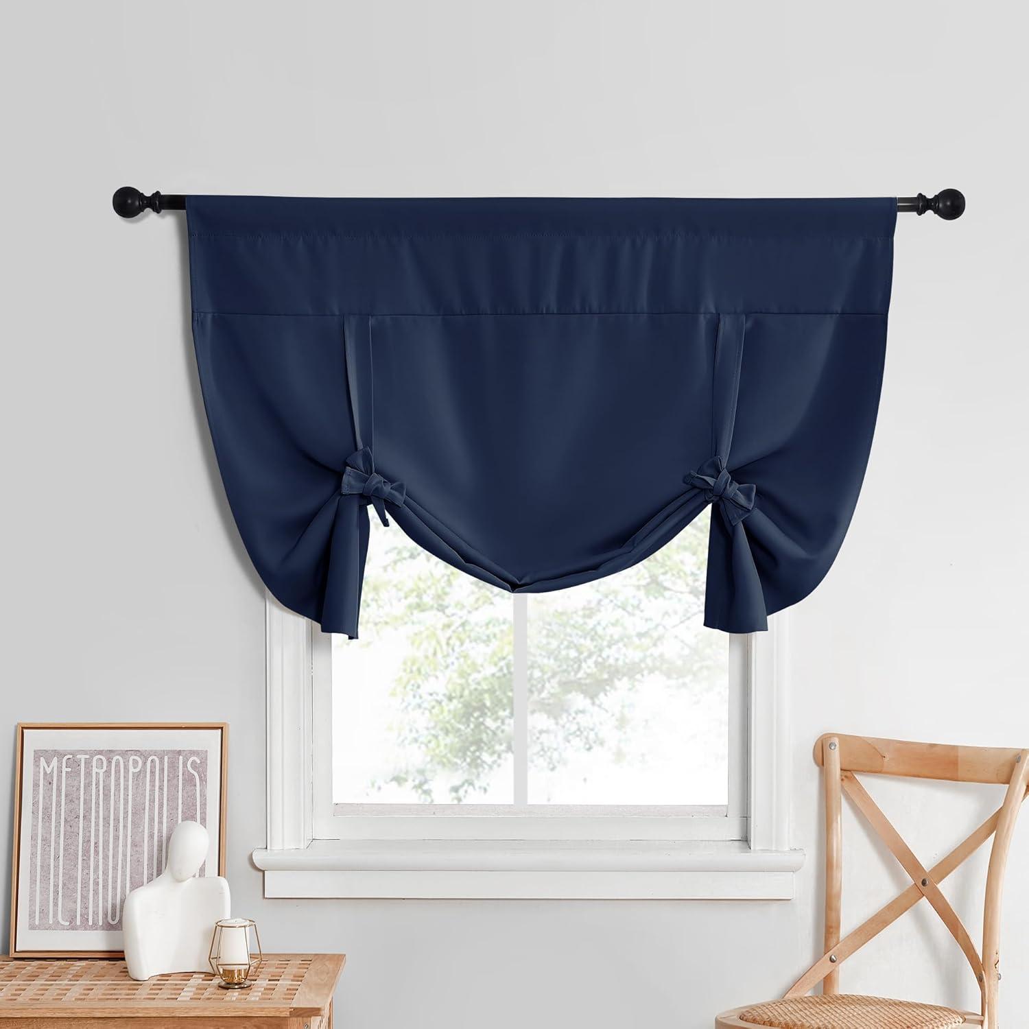 NICETOWN Thermal Insulated Blackout Short Curtain – Bathroom Curtain Gray Tie Up Shade for Small Window, Window Valance Balloon Roman Blind (Rod Pocket Panel, 46 inches W x 63 inches L)(Navy)