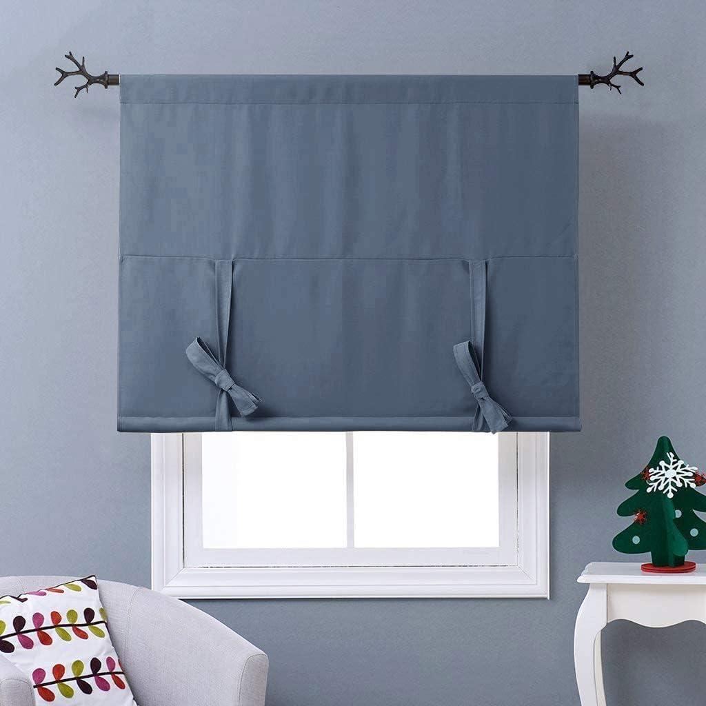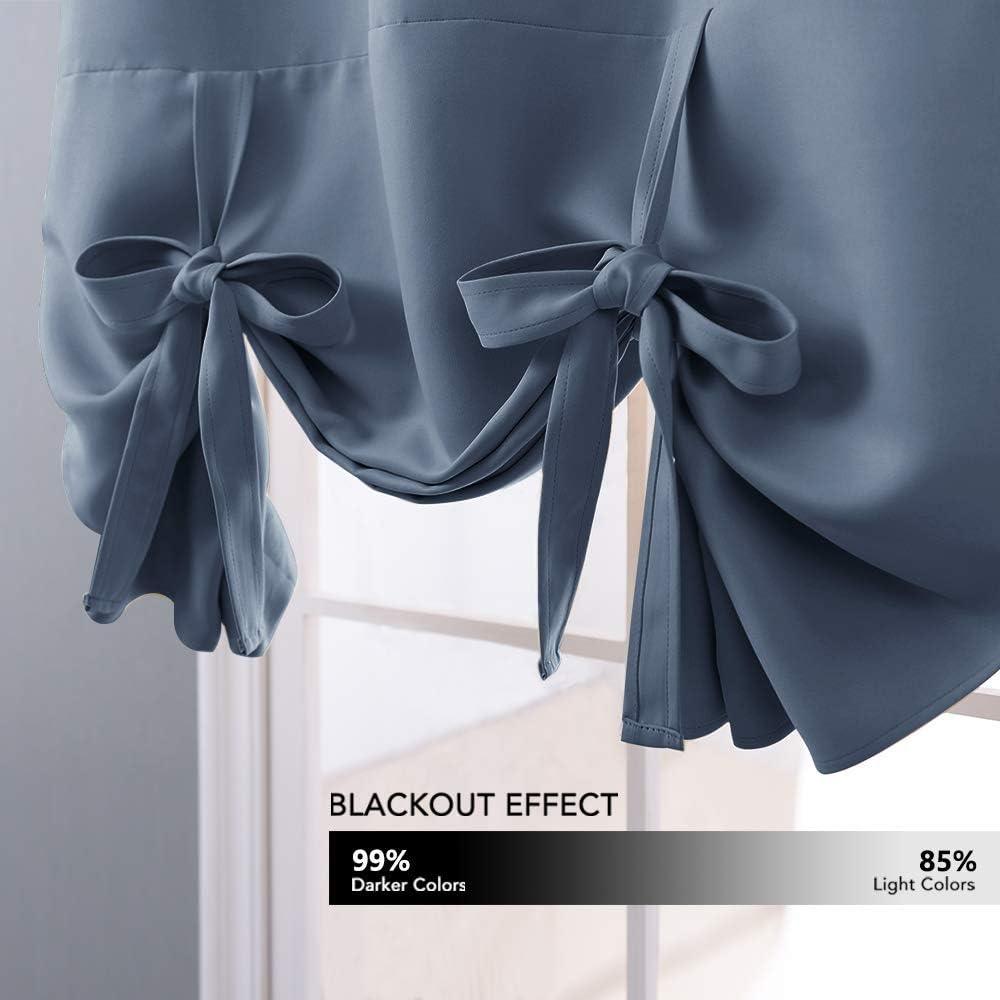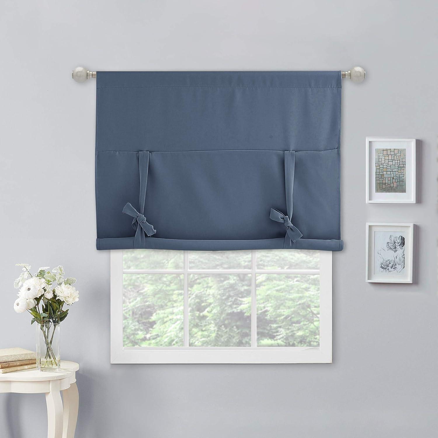 NICETOWN Thermal Insulated Blackout Short Curtain – Bathroom Curtain Gray Tie Up Shade for Small Window, Window Valance Balloon Roman Blind (Rod Pocket Panel, 46 inches W x 63 inches L)(Stone Blue)