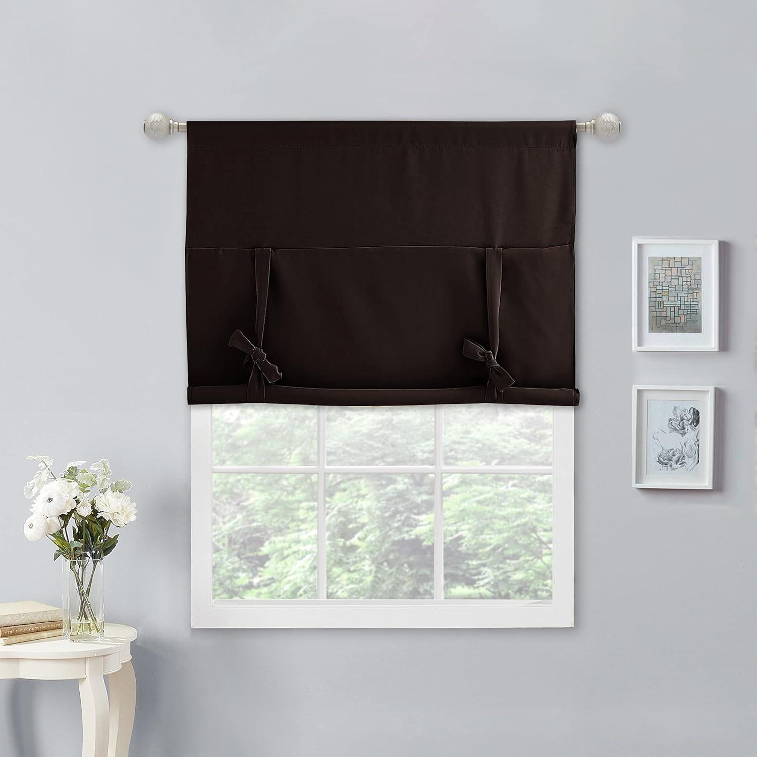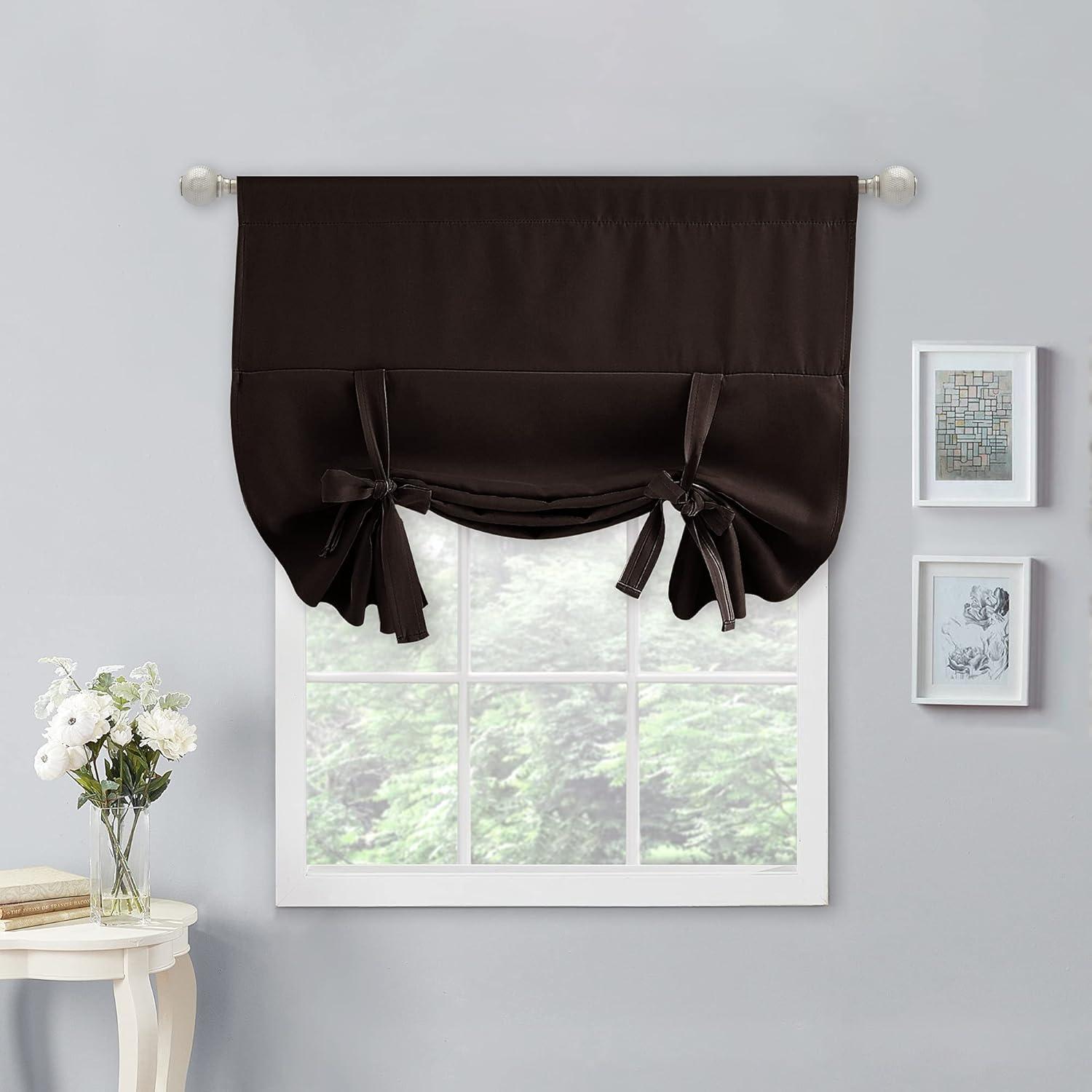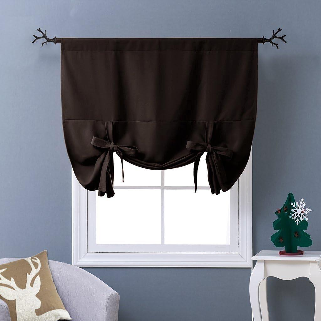 imageNICETOWN Thermal Insulated Blackout Short Curtain  Bathroom Curtain Gray Tie Up Shade for Small Window Window Valance Balloon Roman Blind Rod Pocket Panel 46 inches W x 63 inches LToffee Brown