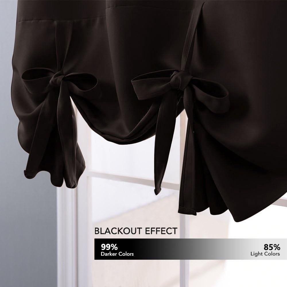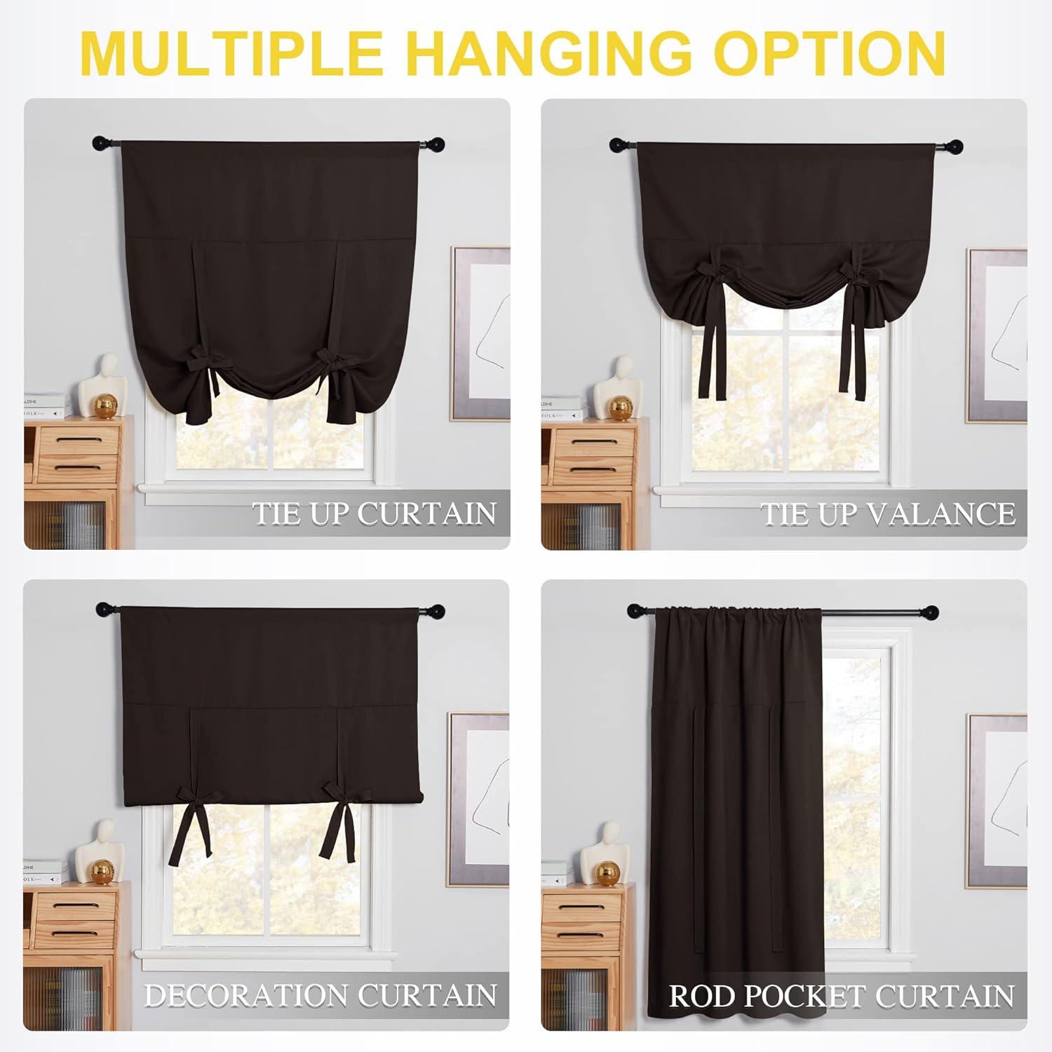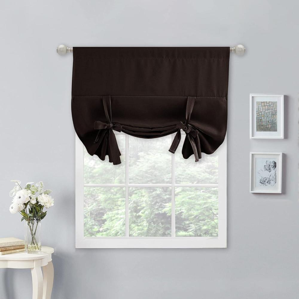 imageNICETOWN Thermal Insulated Blackout Short Curtain  Bathroom Curtain Gray Tie Up Shade for Small Window Window Valance Balloon Roman Blind Rod Pocket Panel 46 inches W x 63 inches LToffee Brown