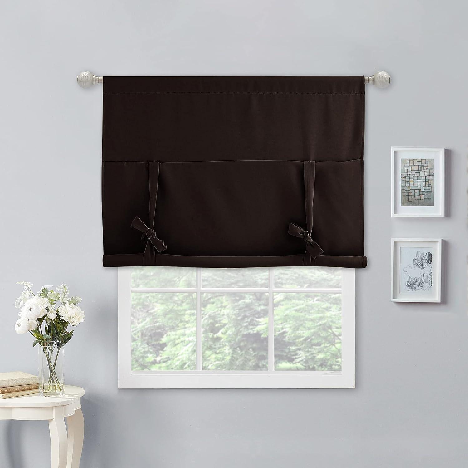 NICETOWN Thermal Insulated Blackout Short Curtain – Bathroom Curtain Gray Tie Up Shade for Small Window, Window Valance Balloon Roman Blind (Rod Pocket Panel, 46 inches W x 63 inches L)(Toffee Brown)