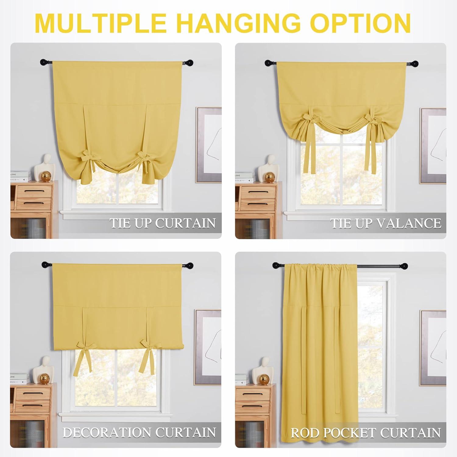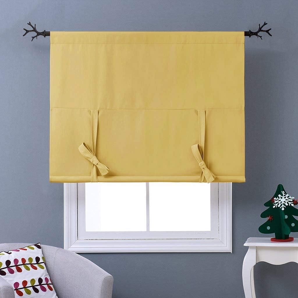 NICETOWN Thermal Insulated Blackout Short Curtain – Bathroom Curtain Gray Tie Up Shade for Small Window, Window Valance Balloon Roman Blind (Rod Pocket Panel, 46 inches W x 63 inches L)(Yellow)
