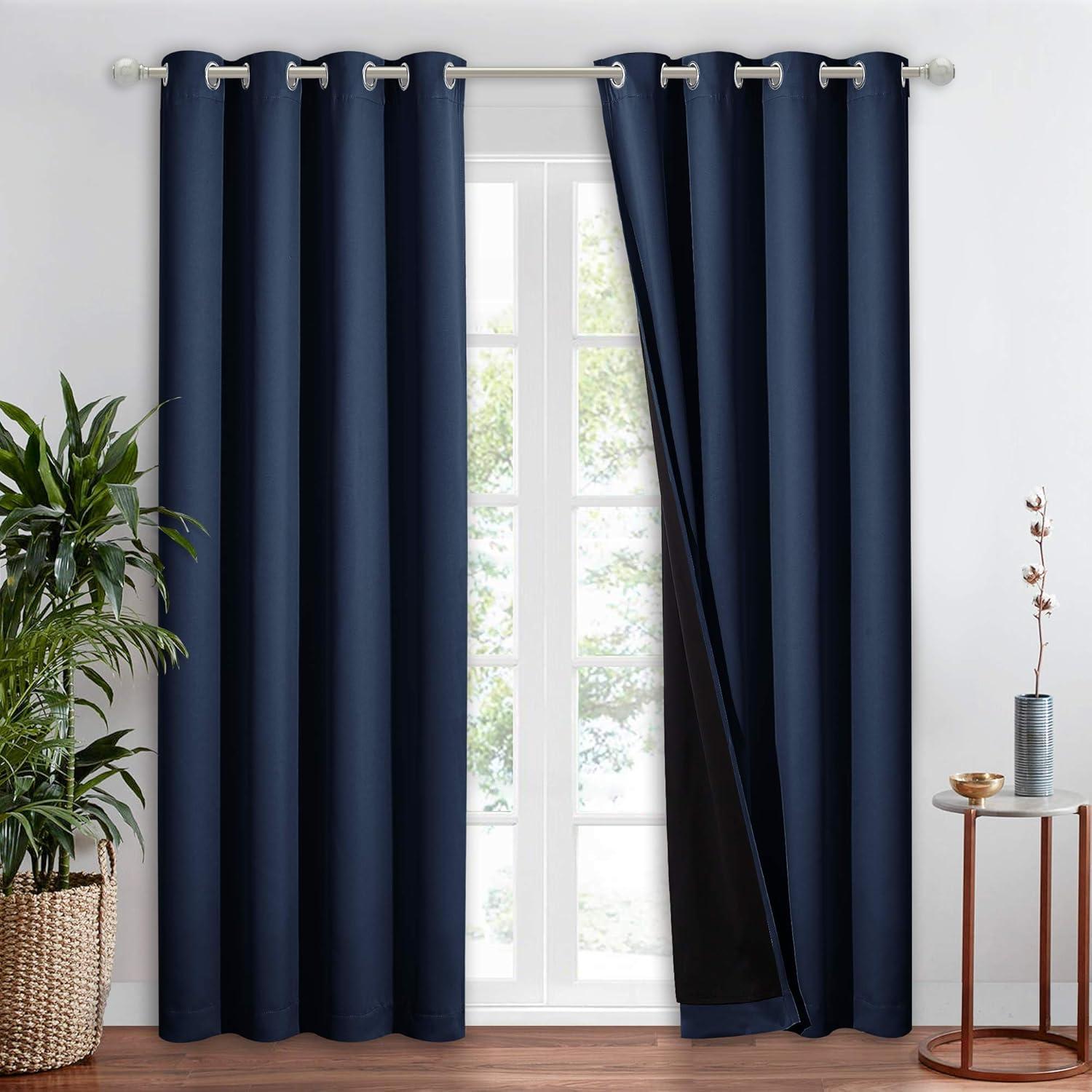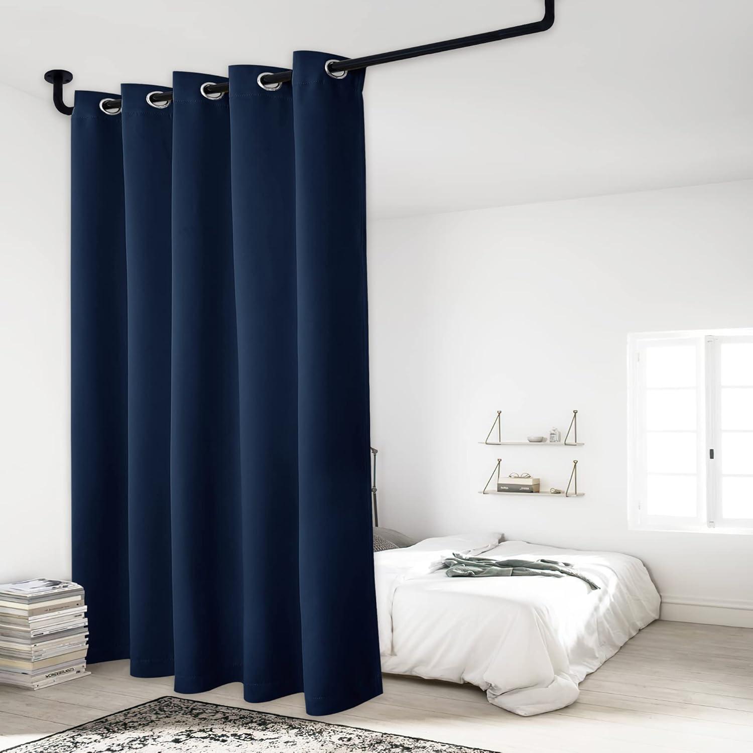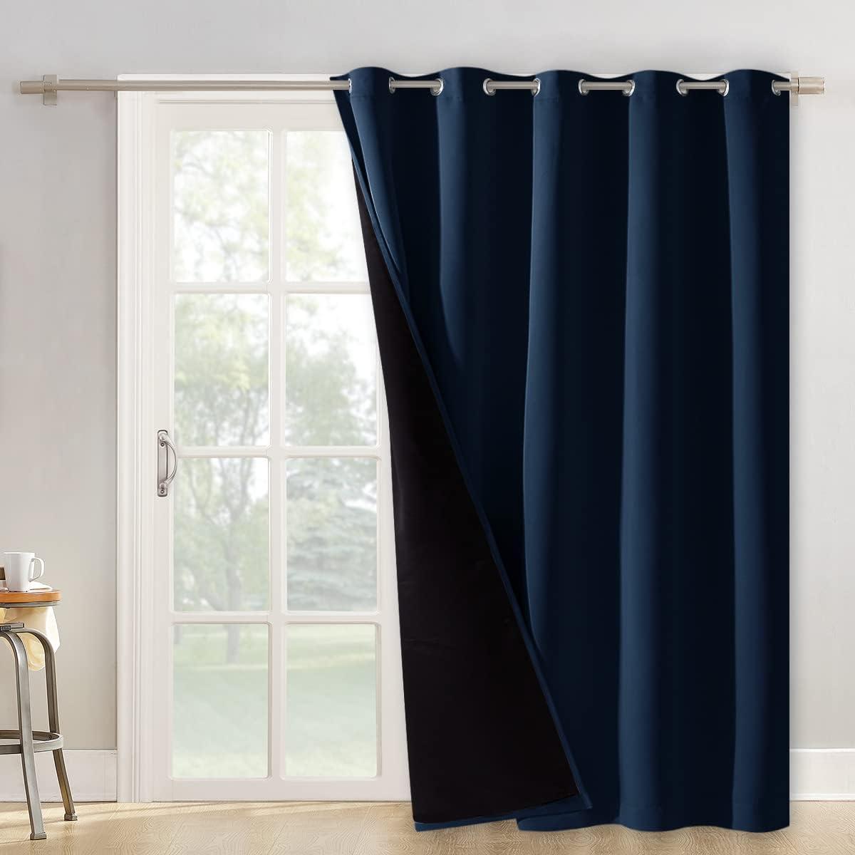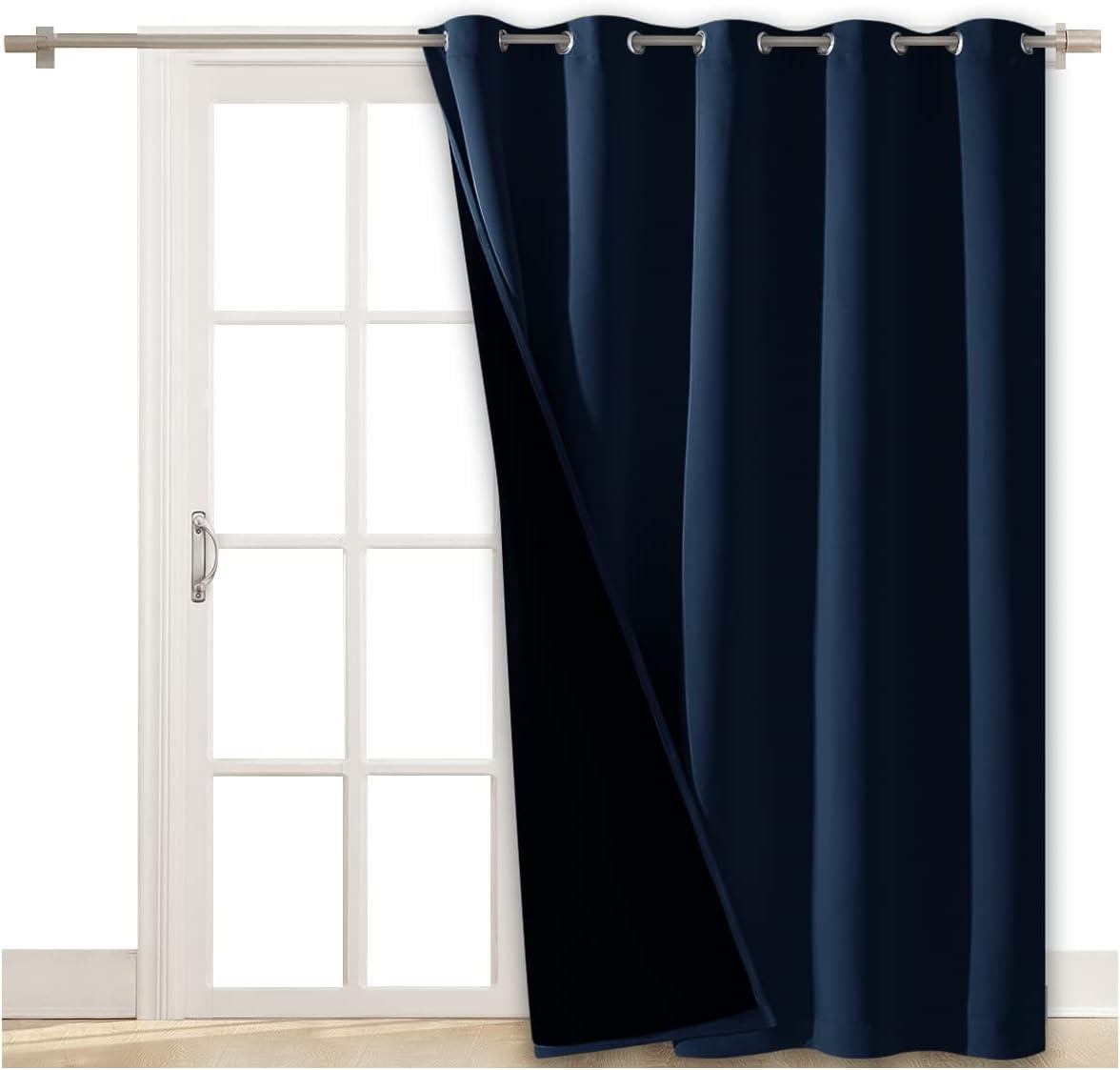 NICETOWN Total Shade Patio Door Curtain, Heavy-Duty Full Light Shading Sliding Door Drape Room Divider Curtain, Vertical Blinds for Window(1 Panel, 70 inches Wide x 63 inches Long, Gray(Navy)