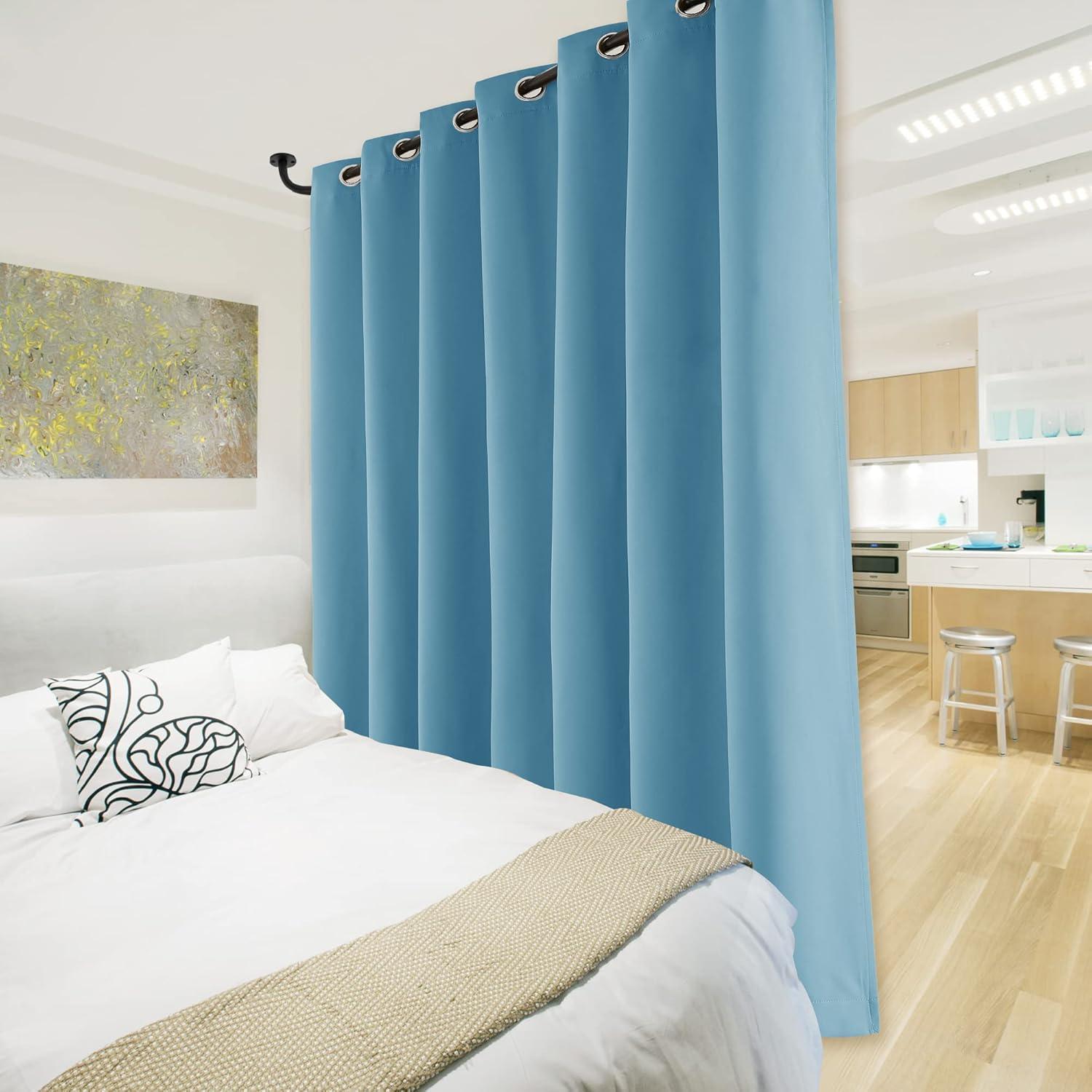 NICETOWN Total Shade Patio Door Curtain, Heavy-Duty Full Light Shading Sliding Door Drape Room Divider Curtain, Vertical Blinds for Window(1 Panel, 70 inches Wide x 63 inches Long, Gray(Teal Blue)