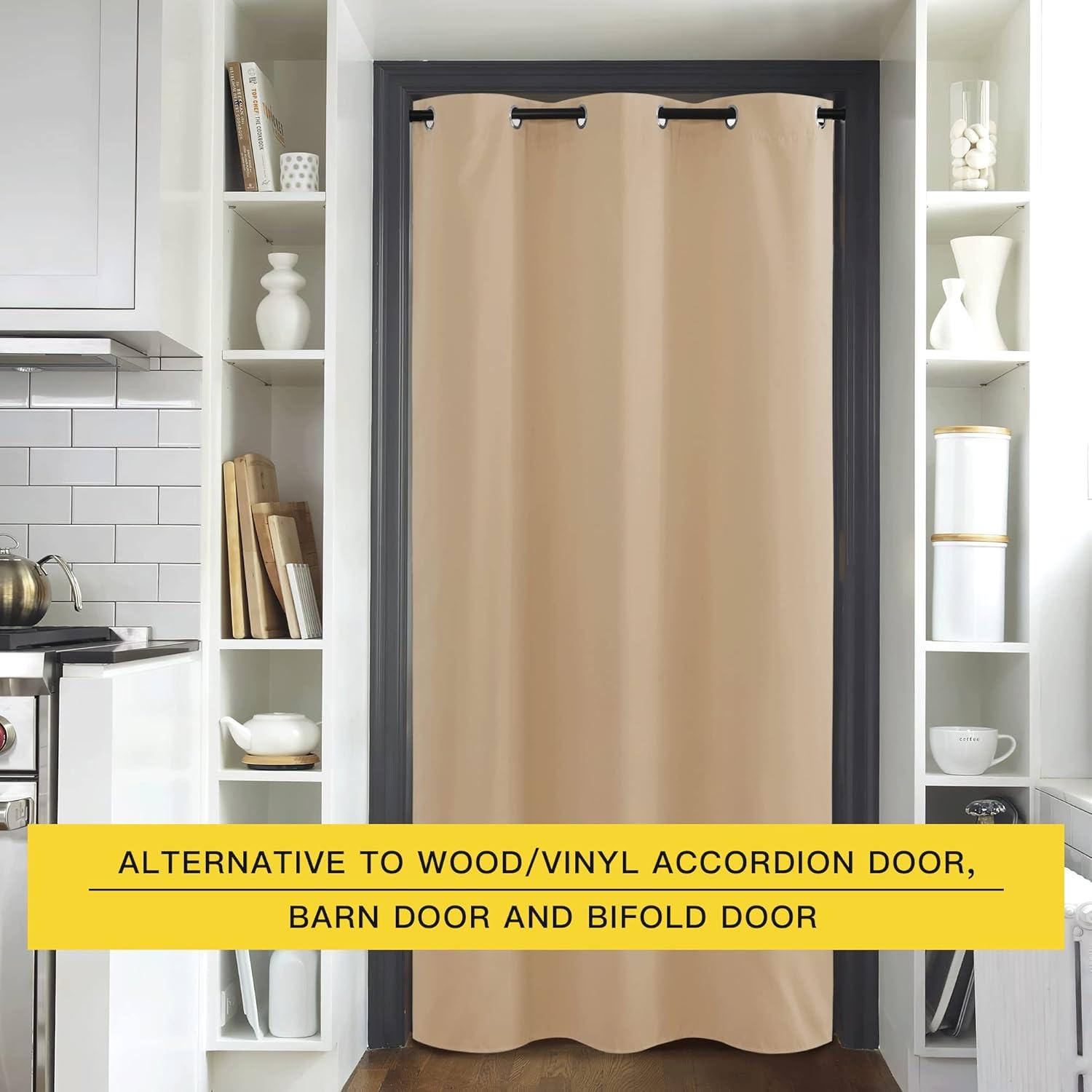 imageNICETOWN Wall Dividers for Rooms Sound Barrier Room Divider Curtain Screen Partition Function Thermal Blackout Patio Door Panel Sliding Door Insulated Curtain Dark Mallard 83ft Wide x 8ft LongBeige