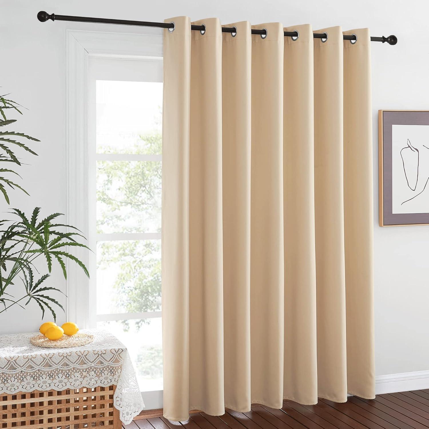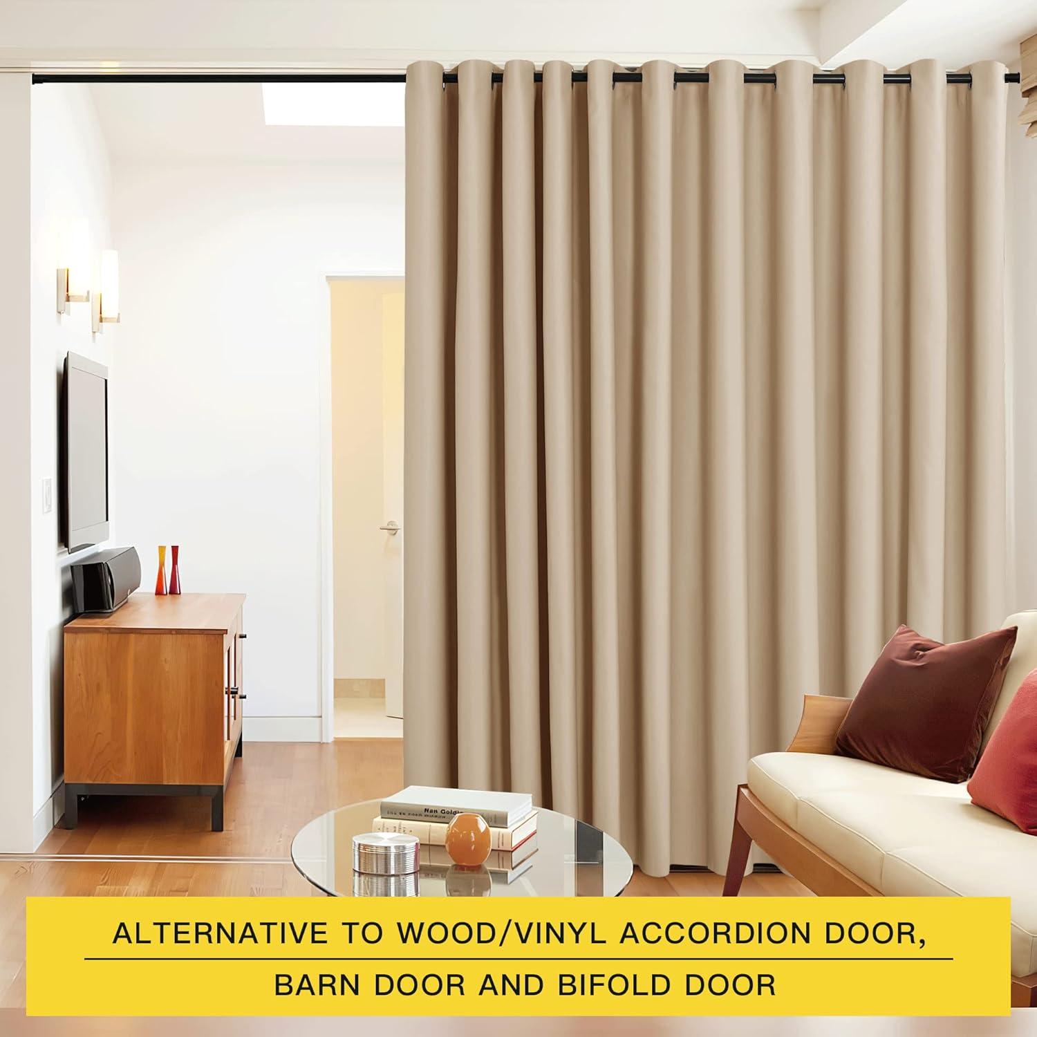 NICETOWN Wall Dividers for Rooms, Sound Barrier Room Divider Curtain Screen Partition, Function Thermal Blackout Patio Door Panel, Sliding Door Insulated Curtain, Dark Mallard, 8.3ft Wide x 8ft Long(Biscotti Beige)
