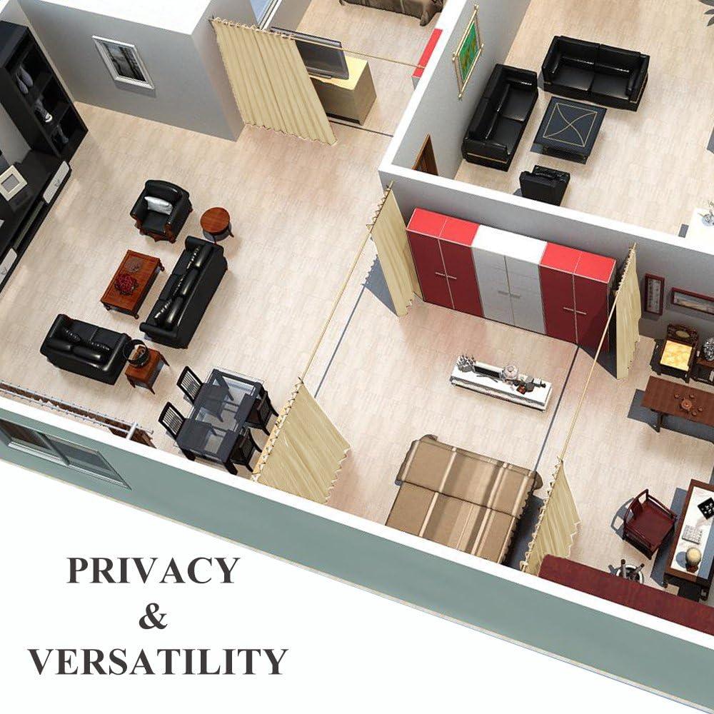 PORTABLE & SUITABLE: Room divider curtains are easily installed and easily packed up, moved, and reused! Perfect for City Loft, Office Space, Shared Bedroom, High Ceilings, Factories, Hospitals, Studio, Dorm, Storage Space, Cafes, hotels, etc.