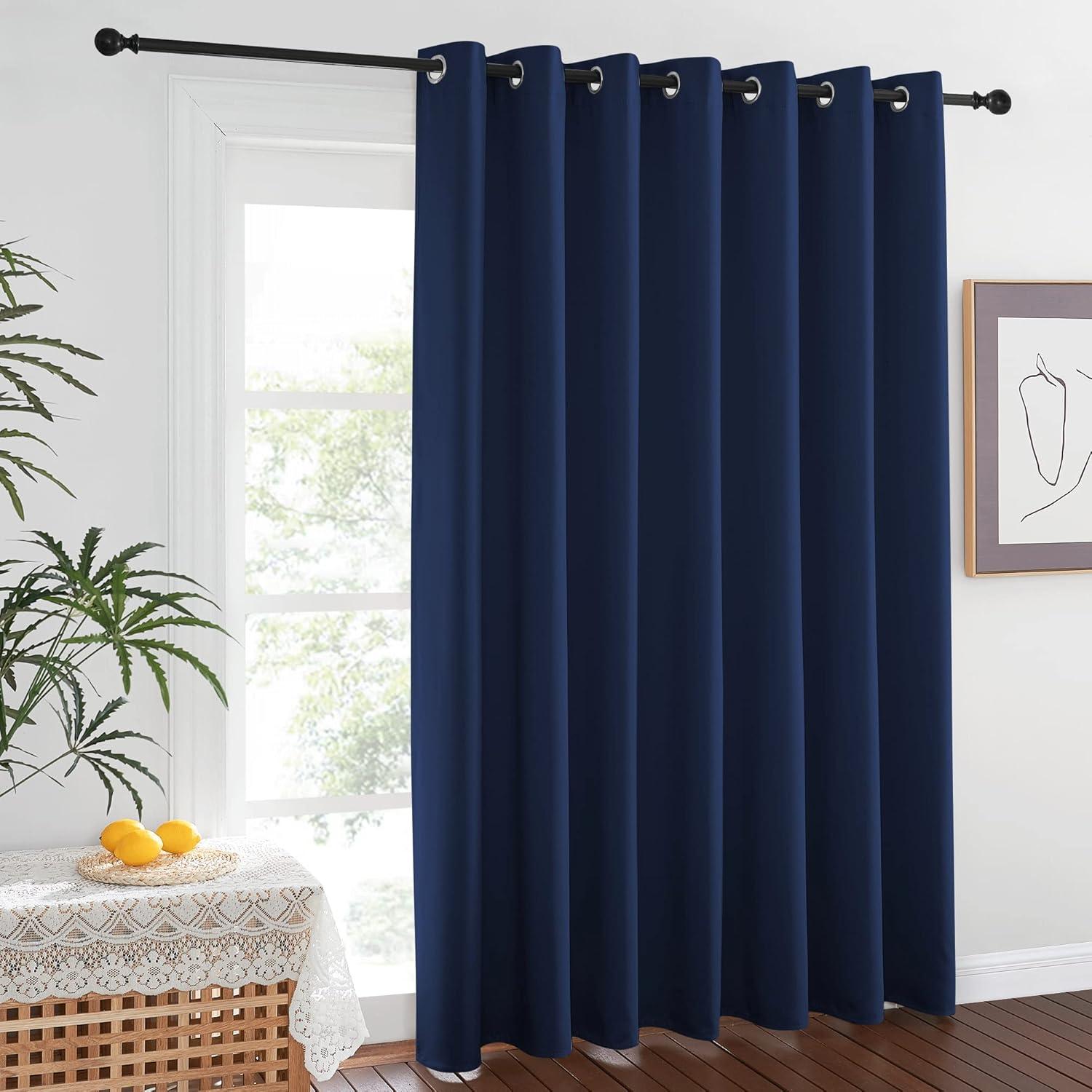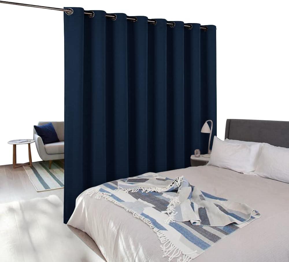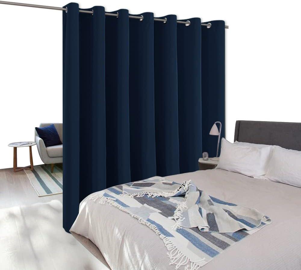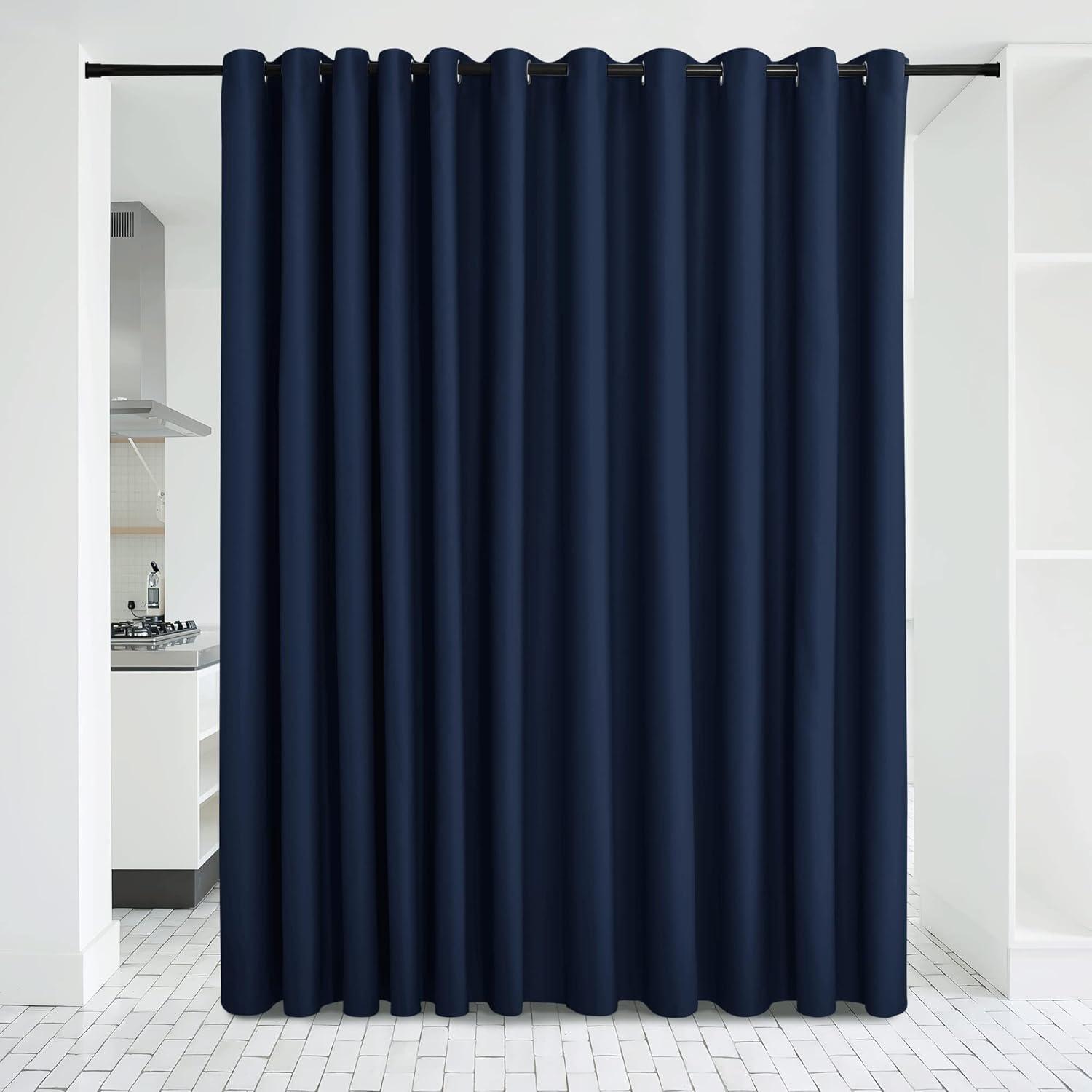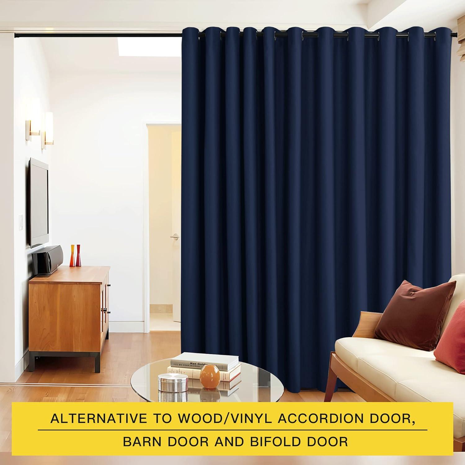 NICETOWN Wall Dividers for Rooms, Sound Barrier Room Divider Curtain Screen Partition, Function Thermal Blackout Patio Door Panel, Sliding Door Insulated Curtain, Dark Mallard, 8.3ft Wide x 8ft Long(Navy)