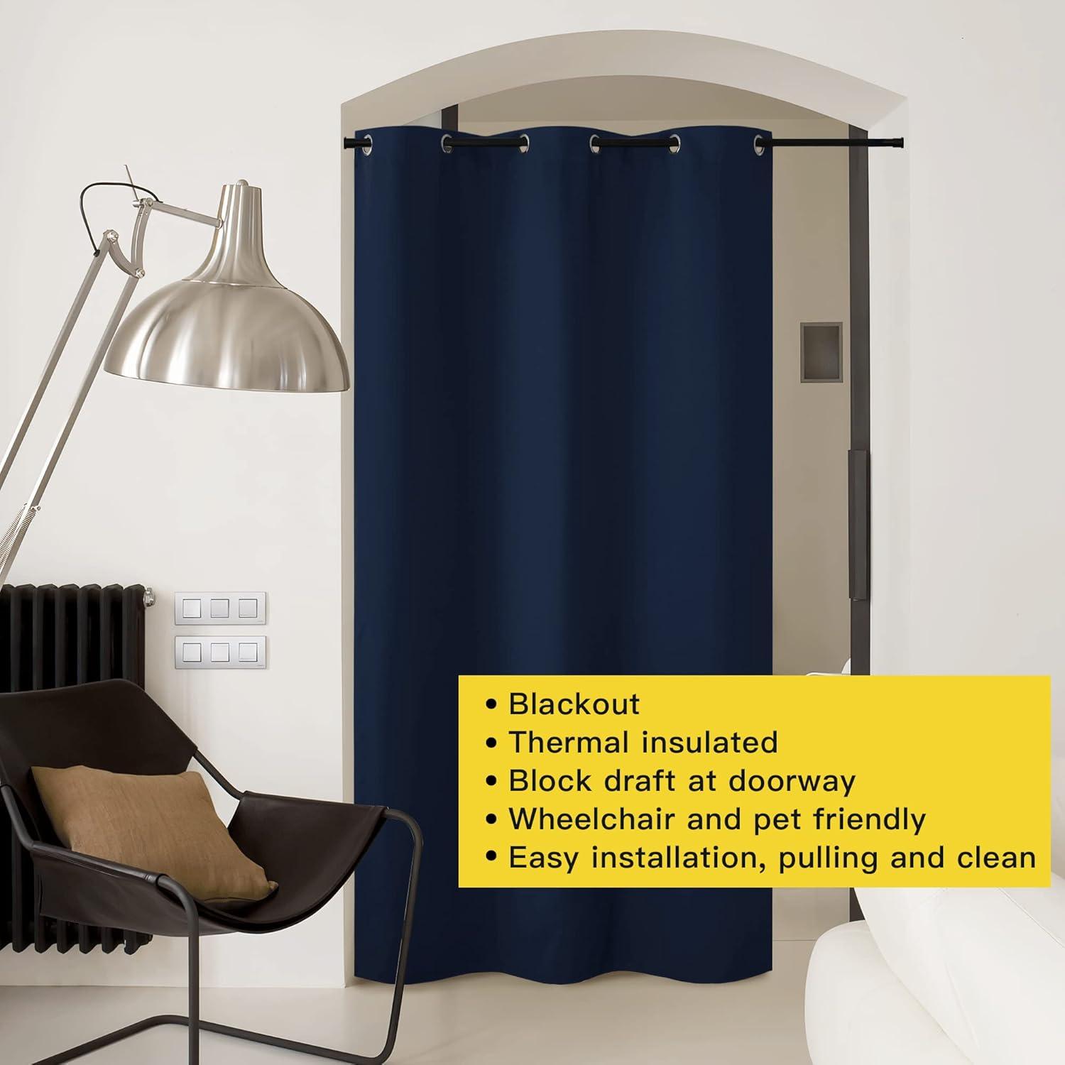 imageNICETOWN Wall Dividers for Rooms Sound Barrier Room Divider Curtain Screen Partition Function Thermal Blackout Patio Door Panel Sliding Door Insulated Curtain Dark Mallard 83ft Wide x 8ft LongNavy