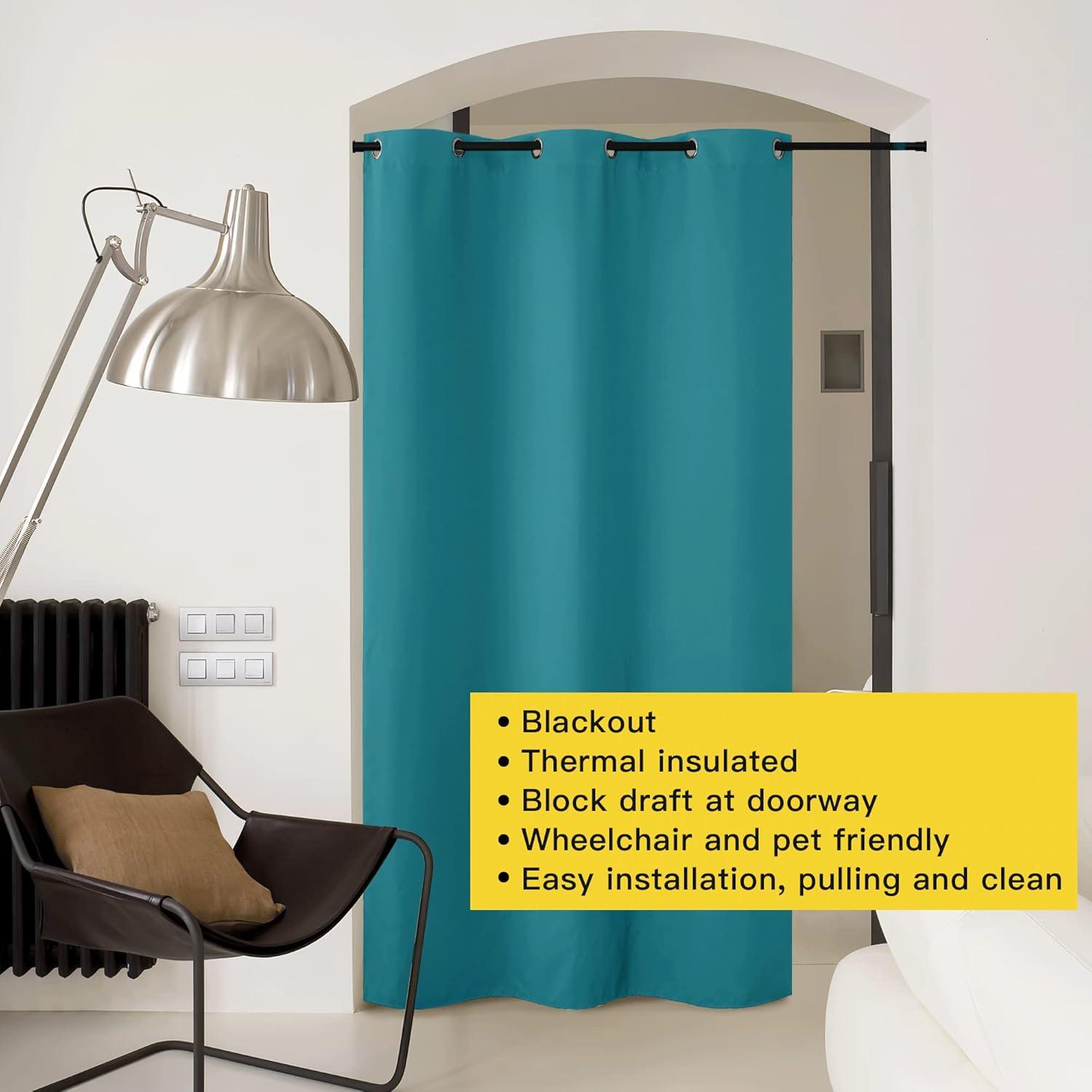 imageNICETOWN Wall Dividers for Rooms Sound Barrier Room Divider Curtain Screen Partition Function Thermal Blackout Patio Door Panel Sliding Door Insulated Curtain Dark Mallard 83ft Wide x 8ft LongPeacock Blue