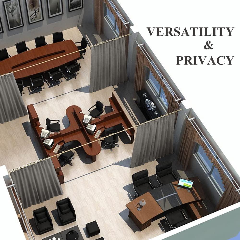 PORTABLE & SUITABLE: Room divider curtains are easily installed and easily packed up, moved, and reused! Perfect for City Loft, Office Space, Shared Bedroom, High Ceilings, Factories, Hospitals, Studio, Dorm, Storage Space, Cafes, hotels, etc.