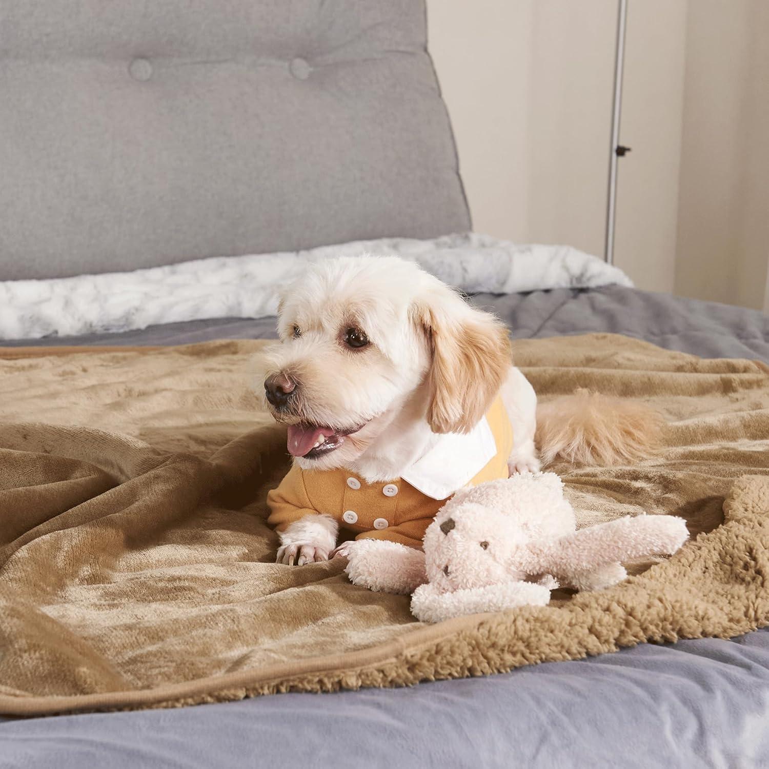 NICETOWN Waterproof Dog Blanket Bed Cover Sherpla Fleece Cozy Plush Bed Large Dog Blanket for Couch Sofa Floor Protecting, Pet Day for Present, 50" W x 60" L, Light Grey(Taupe)