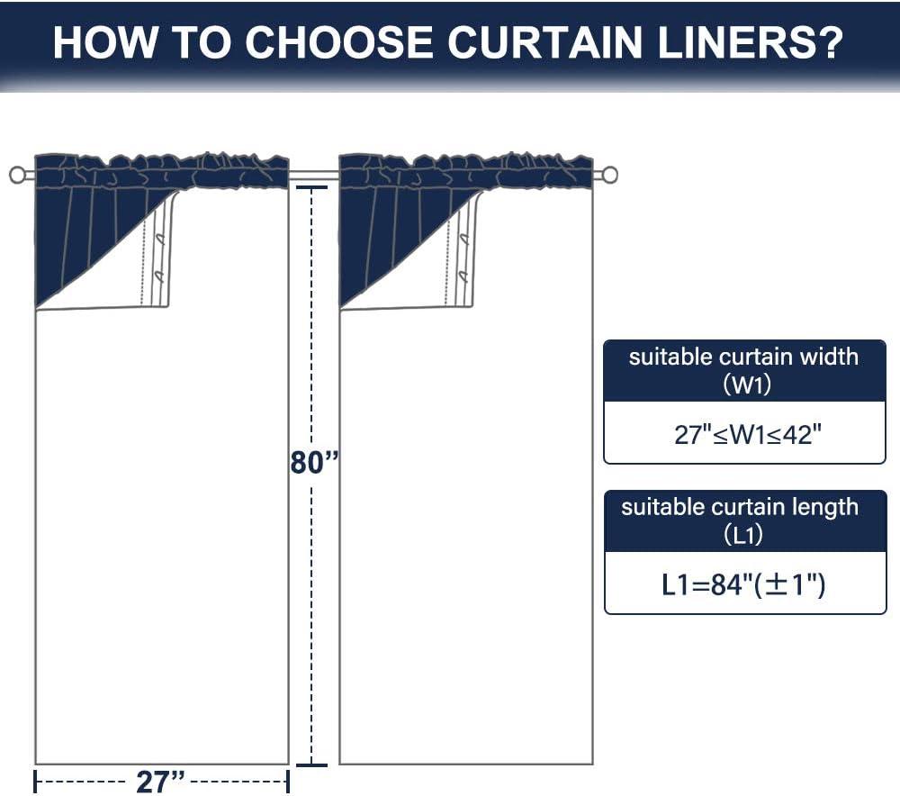 READY MADE: Package includes 2 panels Blackout Curtain Liners, bonus drapery hooks. Each panel measures 27″ wide when it is flat. It is recommended to choose the closest and smaller size according to the size of the curtain. The same material back as of front makes it appear more elegant.