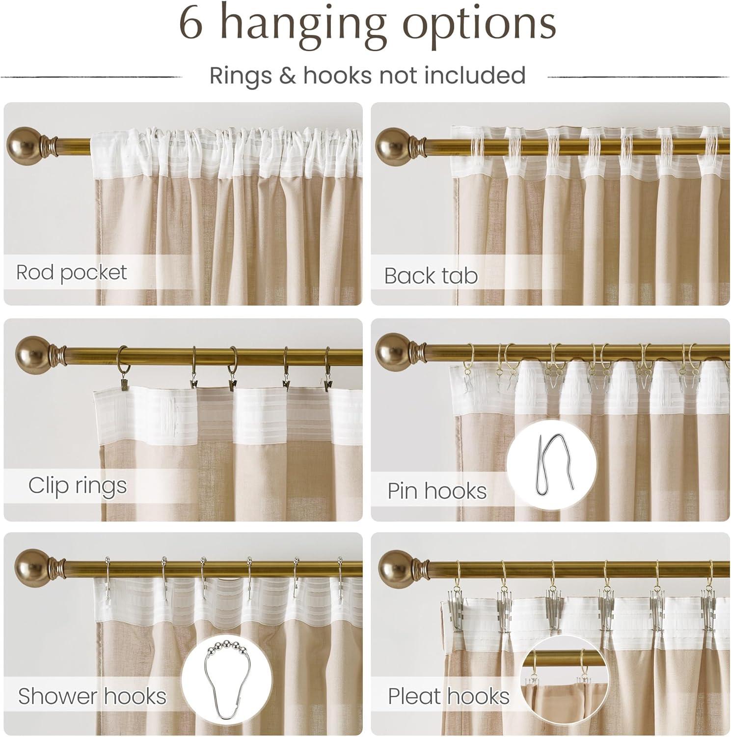Ready Made: 2 panels of thick Linen curtains per package, and each measures 52″W (104″W for pair). Constructed with a back loop (2.3 inches) and rod pocket (3.3 inches), so you will get 3 hanging options. (clip rings are not included)