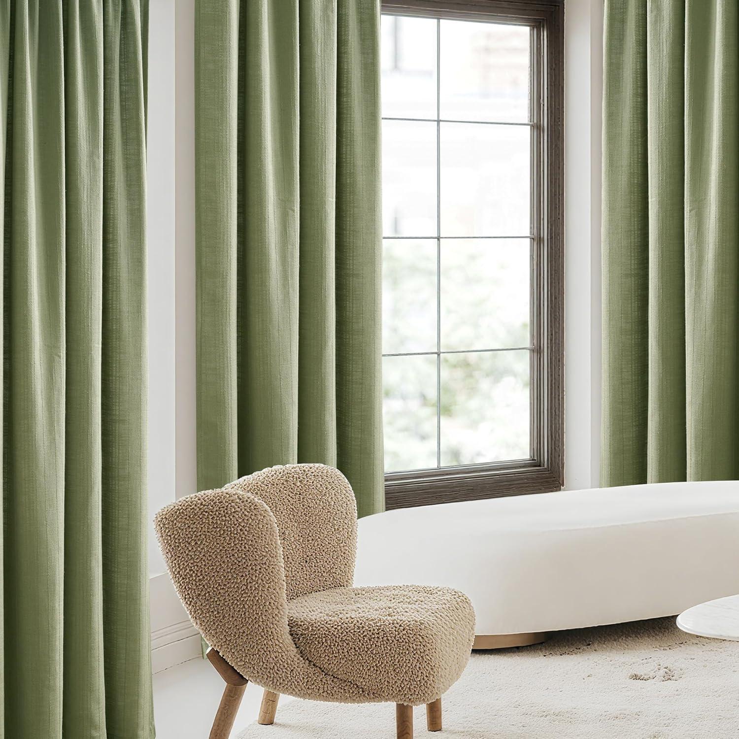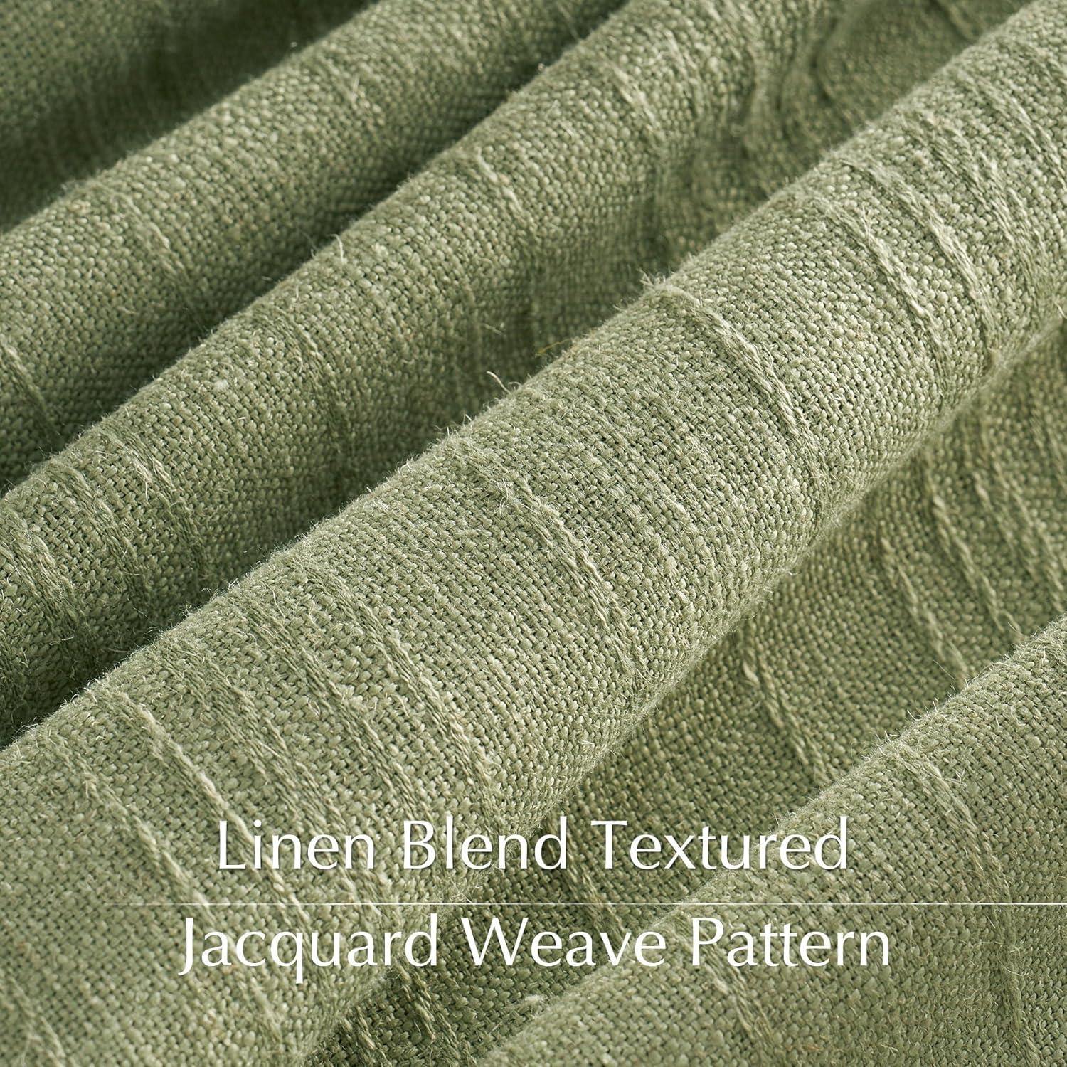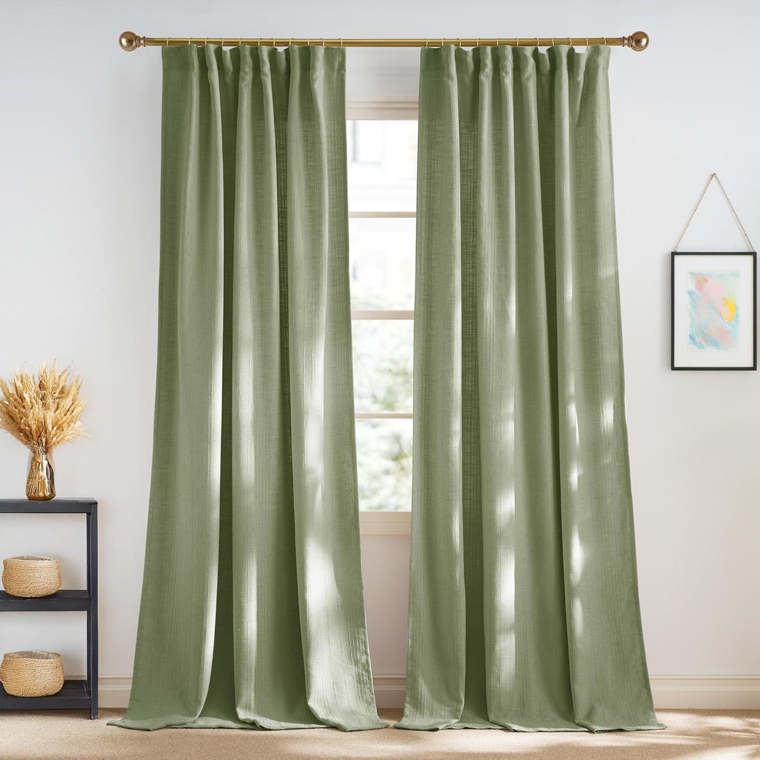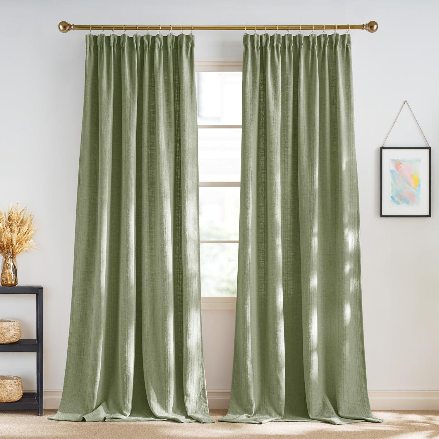 NICETOWN White Linen Bedroom Curtains, Back Tab/Rod Pocket with Pleat Tape Privacy Added with Light Filtering Semi Sheer Window Treatments for Living Room, W52 x L95, 2 Panels(Jacquard Sage Green)
