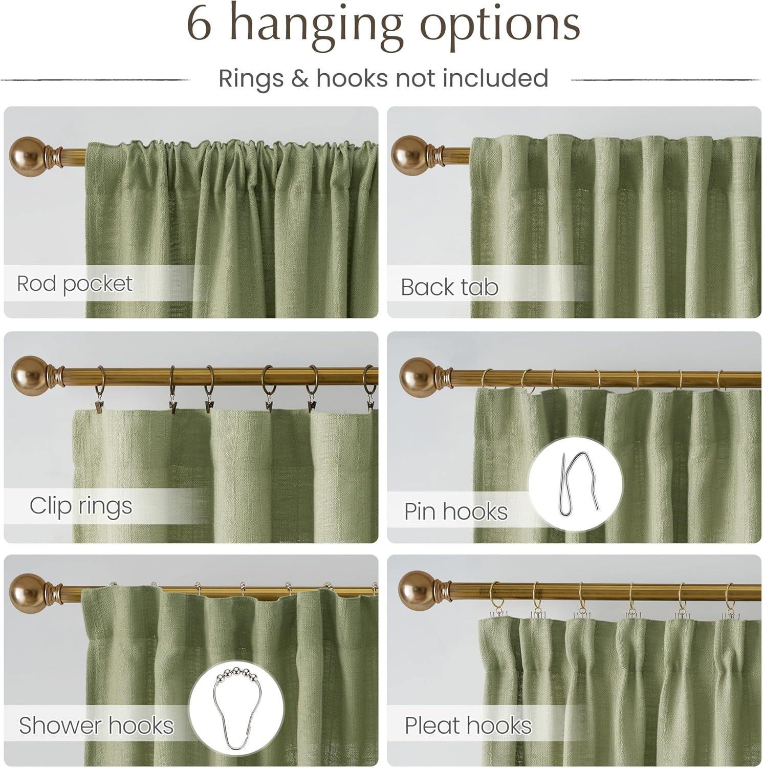 Hanging Options: You will find the linen curtains adopt the pleat tape with back tabs top for your easy changing the look of pinch pleated curtains. Meanwhile, rod pocket and back tab hanging options are also available for your choice.