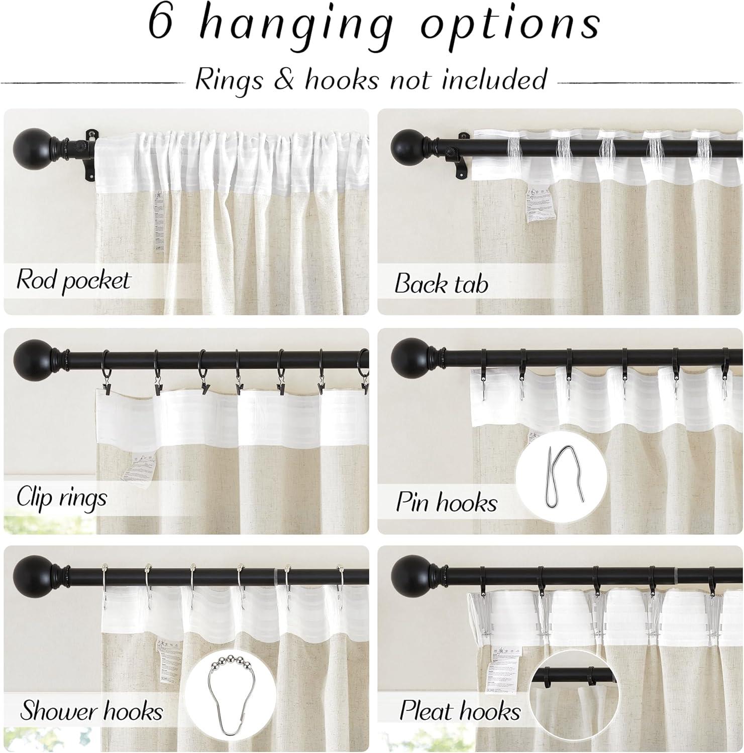 Ready Made: 2 panels of thick Linen curtains per package, and each measures 52″W (104″W for pair). Constructed with a back loop (2.3 inches) and rod pocket (3.3 inches), so you will get 3 hanging options. (clip rings are not included)