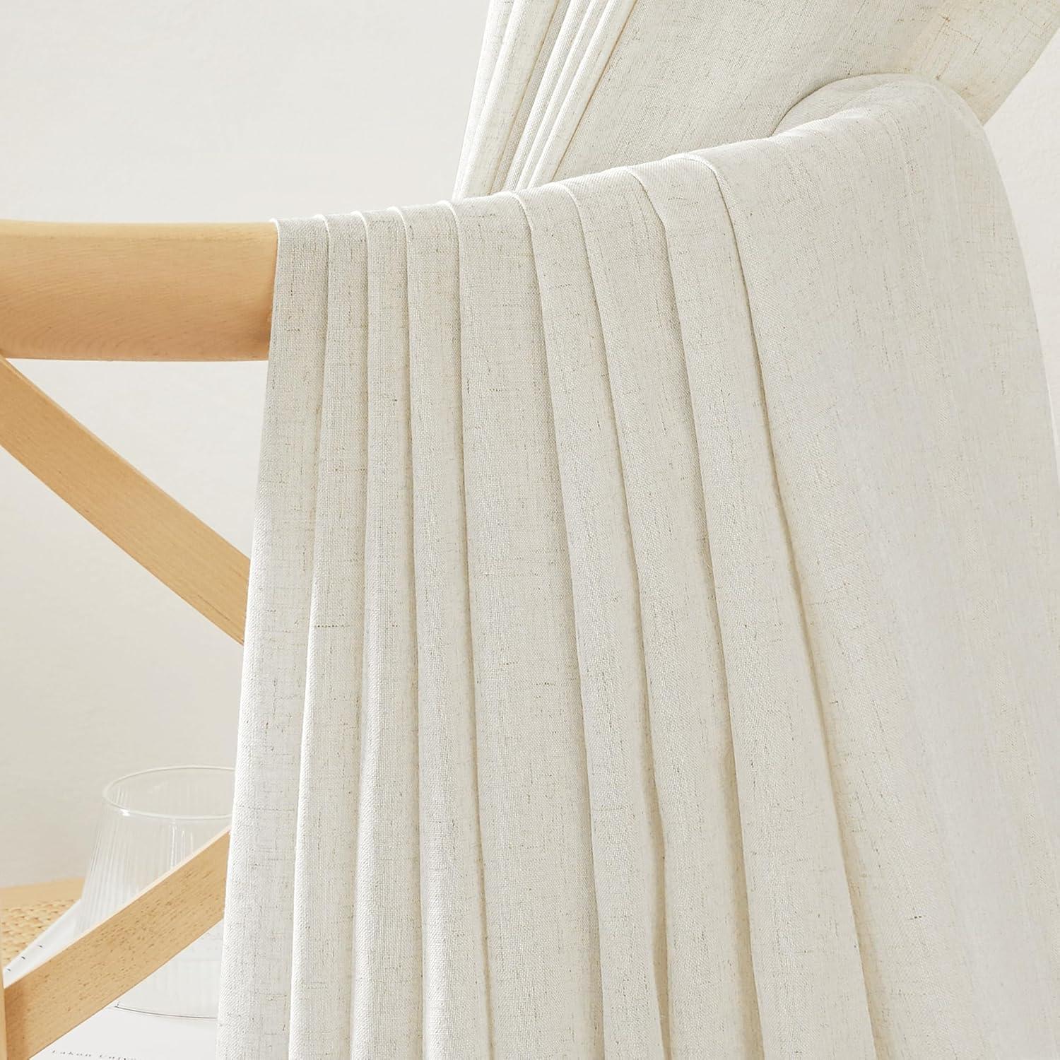 imageNICETOWN White Linen Bedroom Curtains Back TabRod Pocket with Pleat Tape Privacy Added with Light Filtering Semi Sheer Window Treatments for Living Room W52 x L95 2 PanelsNatural