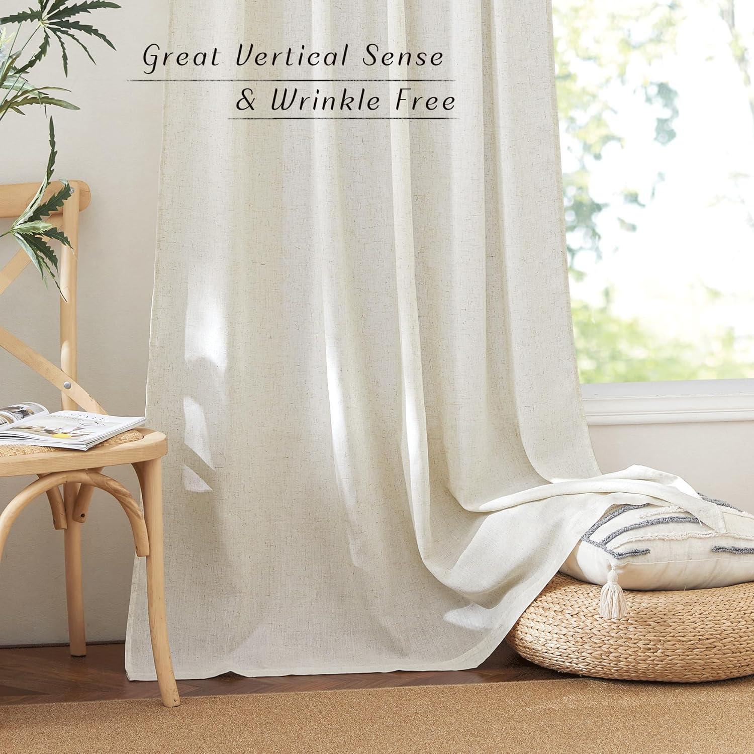 NICETOWN White Linen Bedroom Curtains, Back Tab/Rod Pocket with Pleat Tape Privacy Added with Light Filtering Semi Sheer Window Treatments for Living Room, W52 x L95, 2 Panels(Natural)