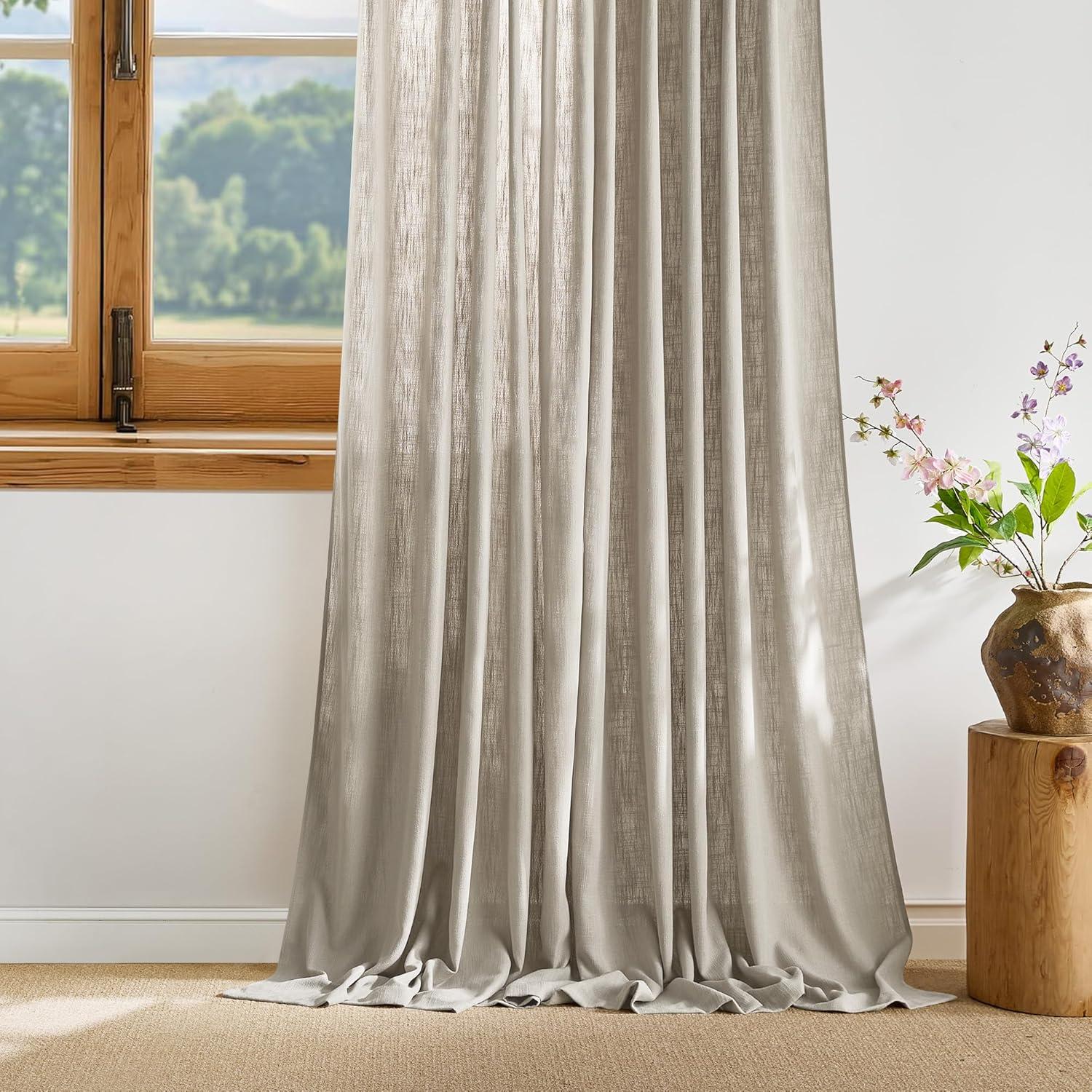 NICETOWN White Linen Bedroom Curtains, Back Tab/Rod Pocket with Pleat Tape Privacy Added with Light Filtering Semi Sheer Window Treatments for Living Room, W52 x L95, 2 Panels(Taupe)