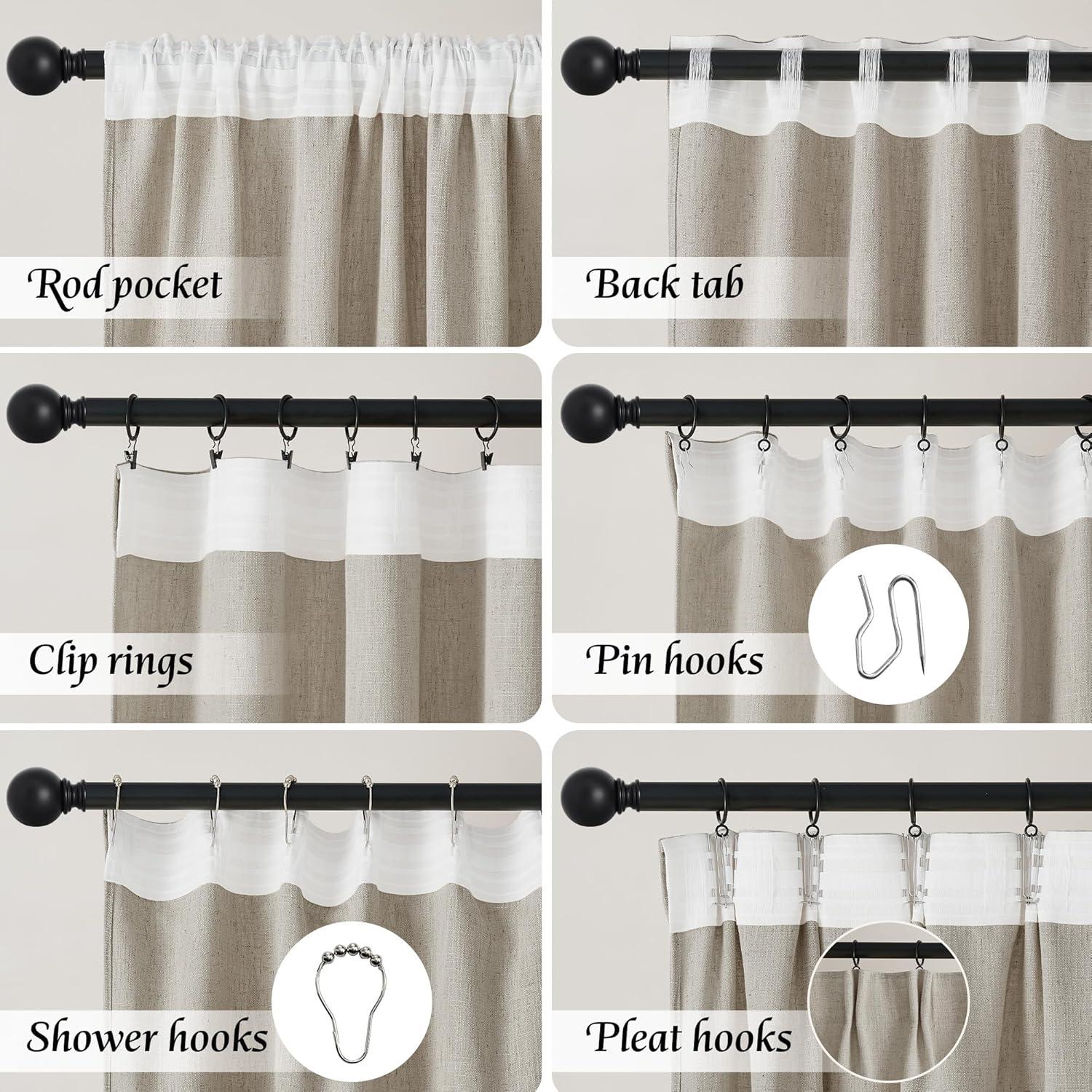 Hanging Options: You will find the linen curtains adopt the pleat tape with back tabs top for your easy changing the look of pinch pleated curtains. Meanwhile, rod pocket and back tab hanging options are also available for your choice.