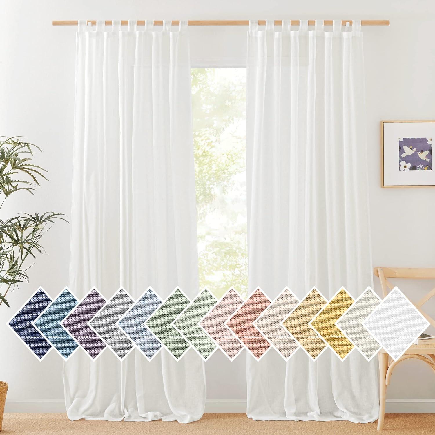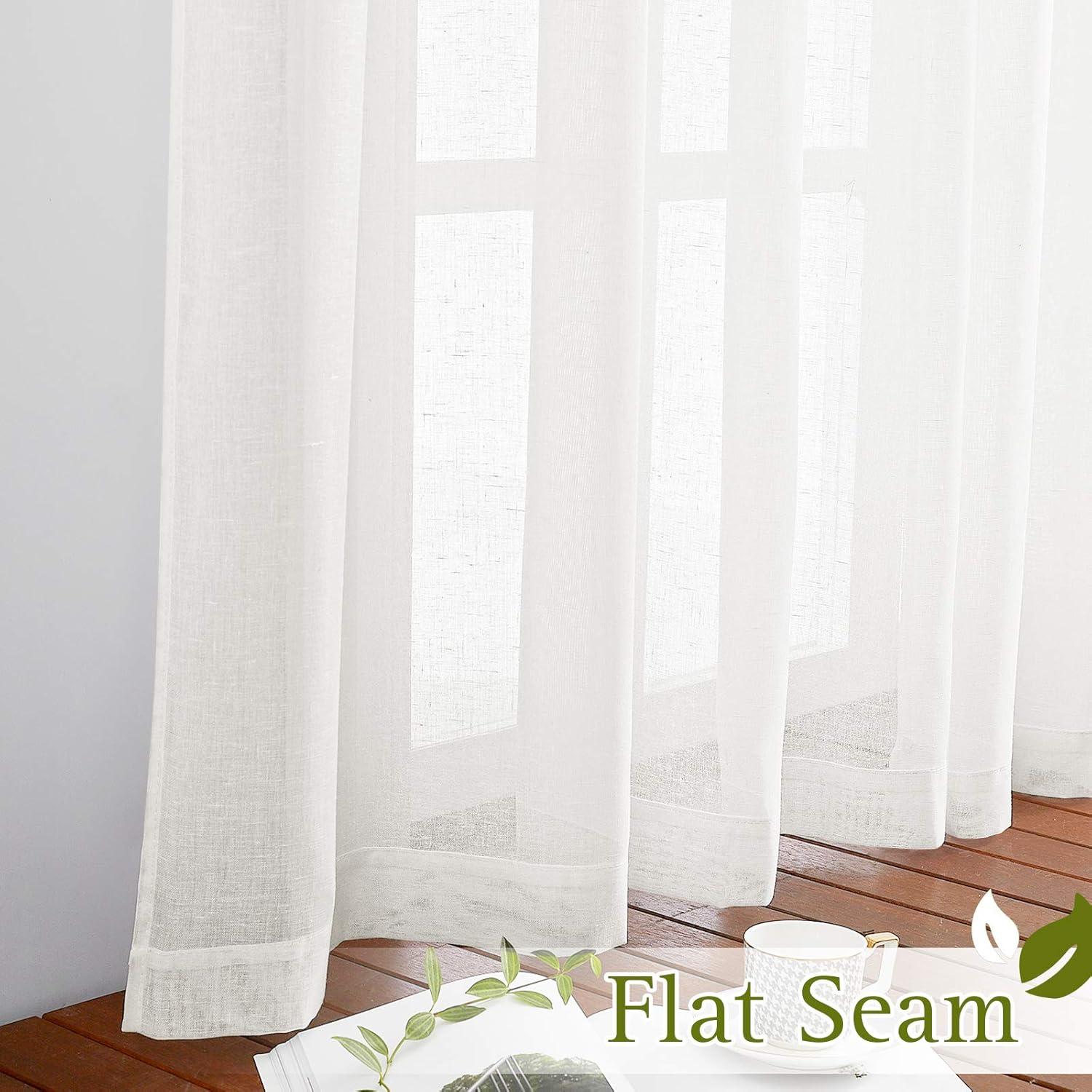 imageNICETOWN White Linen Curtains 84 inch Length Tab Top Soft Semi Sheer Flax Window Treatments Privacy with Light Filtering Vertical Drapes for BedroomLiving Room W52 x L84 2 PanelsNatural