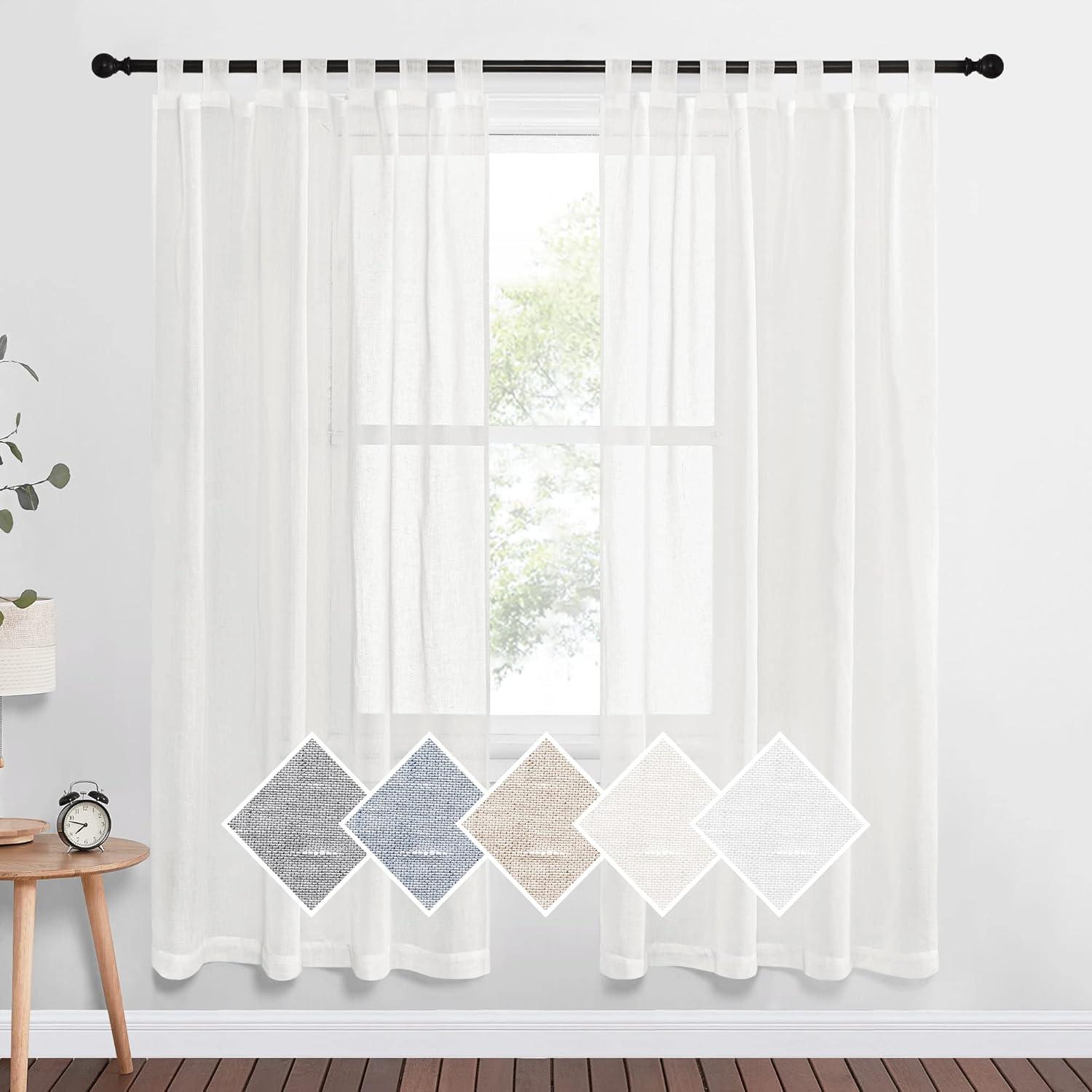 NICETOWN White Linen Curtains 84 inch Length, Tab Top Soft Semi Sheer Flax Window Treatments Privacy with Light Filtering Vertical Drapes for Bedroom/Living Room, W52 x L84, 2 Panels(Ivory)